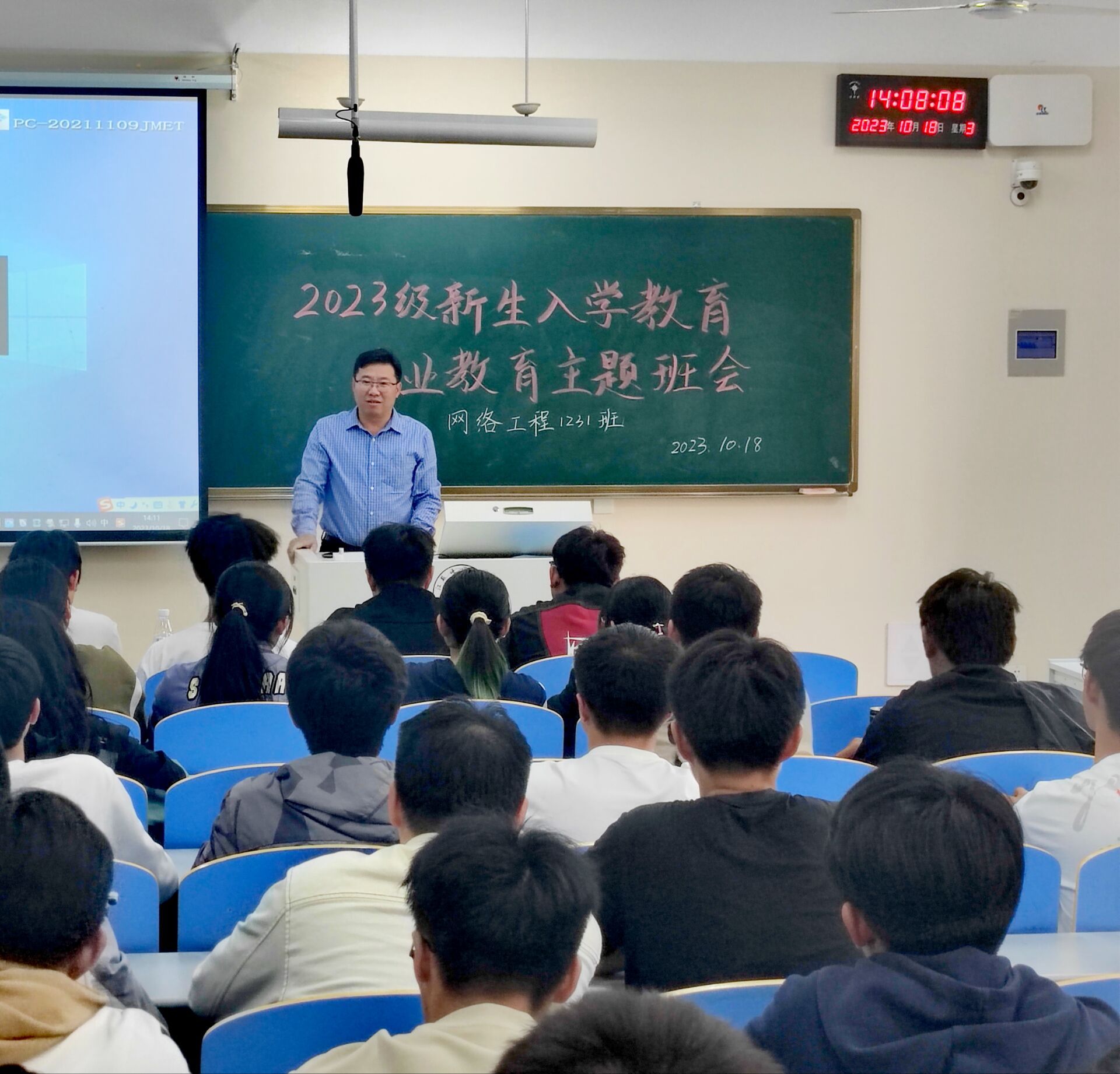 为了帮助新生走好大学第一步路,引导其建立学习专业知识的浓厚兴趣,提高对专业的认同感,10月18日下午,计算机工程学院网络工程专业新生召开专业教育主题班会。副校长马廷淮作为联系班级的校领导参加了此次班会活动。会议由班主任王霞老师主持。