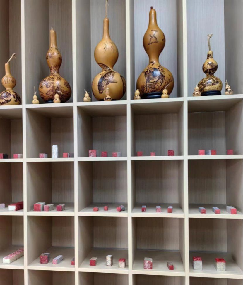 为推动非遗项目与劳动教育实践有机融合, 后勤管理处(劳动教育实践中心)在“非遗+”上做优劳动课程,聘请连云港市知名非遗文化传承人定期为我校学生举办“印章刻制”、“葫芦烙画”传统技艺培训。