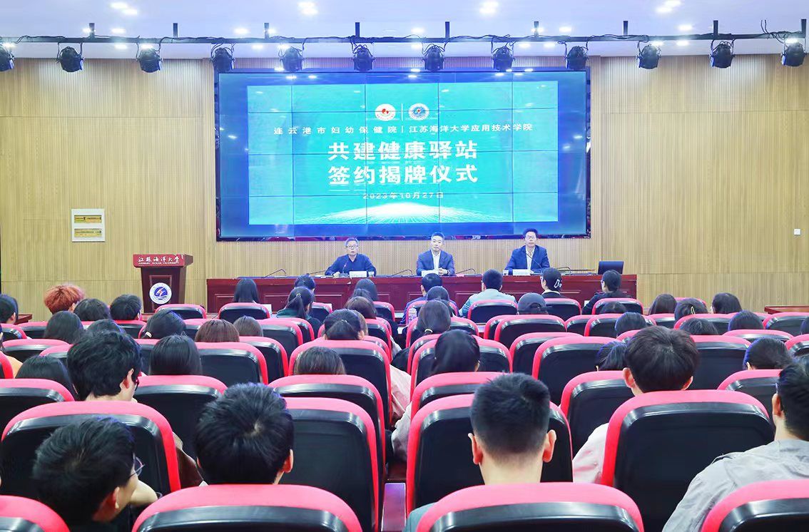 10月27日上午,应用技术学院与连云港市妇幼保健院在敦行楼报告厅举行共建健康驿站签约揭牌仪式。学院党委书记赵求勇,连云港市妇幼保健院院长、党委副书记赵成出席仪式,仪式由学院党委副书记时树奎主持,校医双方相关职能部门负责人和学生代表参加了活动。