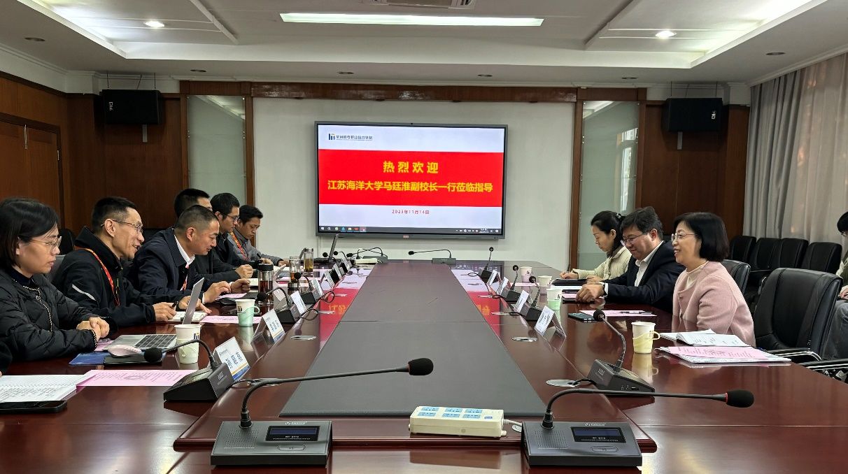 马廷淮回顾了长期以来两校建立的深厚友谊,对常州机电职业技术学院在人才培养、专业建设等方面取得的成绩表示赞赏,希望两校能在课程、师资、科研,以及实践教学、学科竞赛等方面开展更深层次合作,加强师生间交流互动,促进专业建设和教学成果经验共享,提升人才培养质量。教务处安俊丽处长表示合作办学项目运行平稳、成绩斐然,学校将继续推动课程体系、学科竞赛、虚拟教研室等方面交流合作。