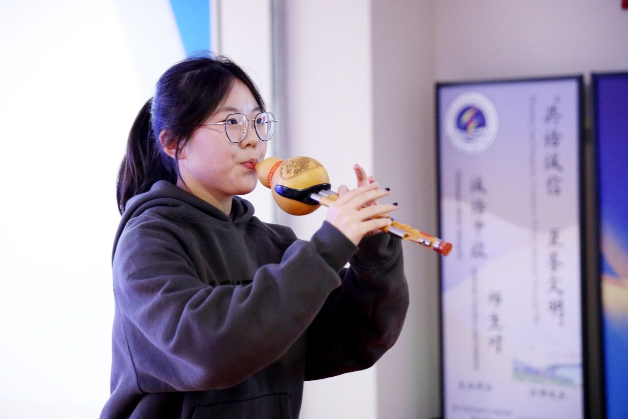 彭铖宇、张亦山、周煜然和许含一合唱《相信》,富有磁性且充满活力的歌声表达了“世界是不完美的,但生命的每一刻都是美的”乐观豁达、报诚守真的人生理想。刘宇彤表演的汉唐舞《礼仪之邦》,展现克己复礼的儒家文化,体现端庄内敛的行为规范,呈现当代中国青年坦荡自信的精神底色。玻利维亚留学生的舞蹈《库蒂皮伊》表达了南美洲社会对坦诚、信誉和正直等人类优秀品质的追求。黄诗晴同学的歌曲《同心向未来》以“青春相信理想,征途携手去闯”的气魄,跨越语言的隔阂,在共情与共鸣中刻画出守信践诺的青年群像。