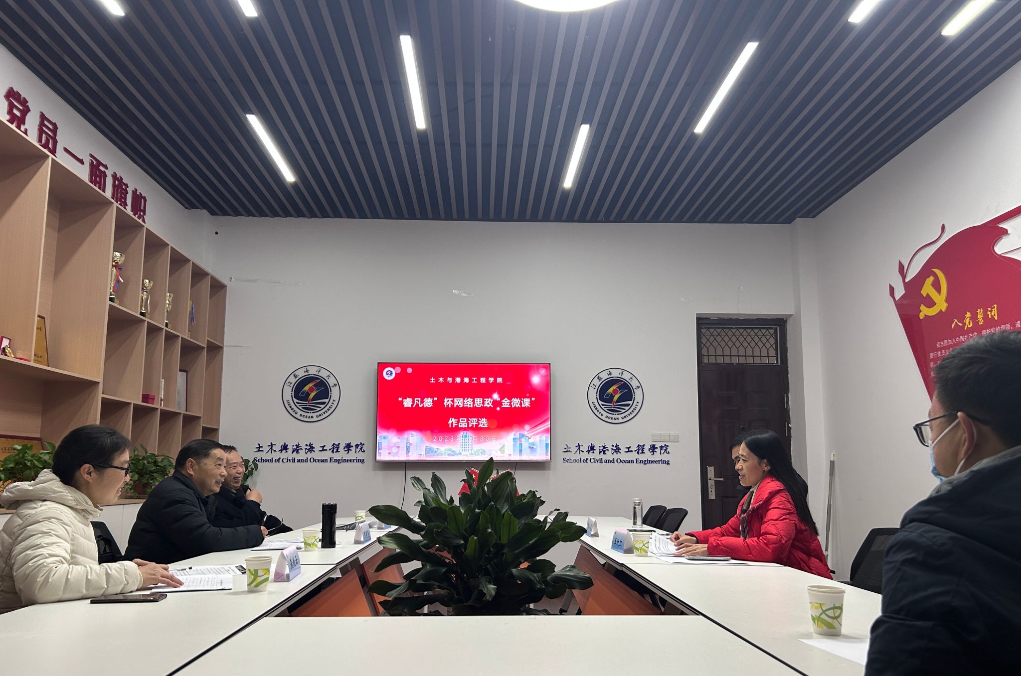 为深入学习宣传贯彻习近平新时代中国特色社会主义思想和党的二十大精神,推动落实“时代新人铸工程”,不断提升网络育人能力,11月30日下午,土木与港海工程学院2023年度网络思政“金微课”院级选拔赛在土木楼318会议室顺利举行。校督导组组长焦明连、校党委宣传部部长王波、校教学质量管理处副处长燕姣云受邀担任评选专家,学院党委书记王改红、副院长蔡小宁及各课程思政团队负责人共同参加活动。