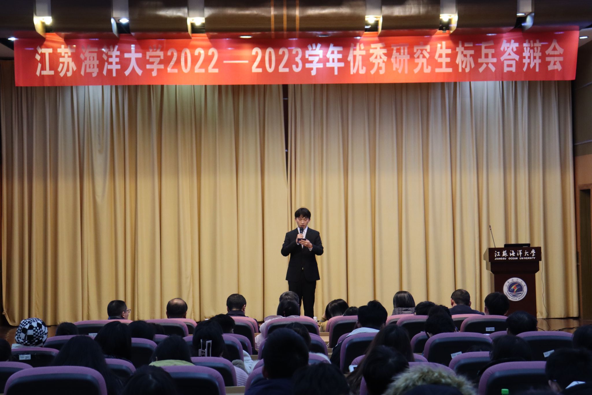 为了切实做好优秀研究生标兵评审工作,充分发挥优秀研究生的榜样力量,展现江海大研究生学子的精神风貌,11月29日下午,由党委研究生工作部、研究生院主办的2022-2023学年优秀研究生标兵展示评审会在文博楼报告厅举行。党委学生工作部部长、学生工作处处长、人民武装部部长陈德翼,校团委书记黄吉庆,海洋技术与测绘学院党委书记王晶,文法学院党委副书记王国银,海洋工程学院副院长黄大志,电子工程学院副院长杨淼,外国语学院副院长王镇等7人担任评委。13名优秀研究生标兵候选人和180余名研究生现场参加。