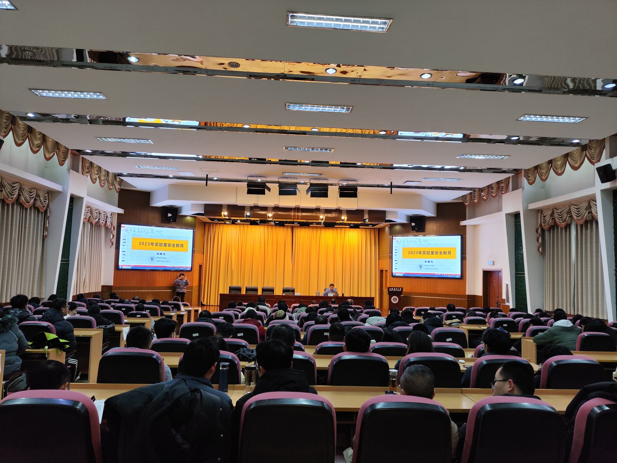 为贯彻落实“安全第一、预防为主”的方针,切实加强实验室安全管理工作,消除安全隐患,12月14日下午,国有资产与实验室管理处邀请环境与化学工程学院施鹏飞教授在文博楼报告厅举行实验室安全教育报告会。相关学院实验教师、实验技术人员及研究生代表170余人参加培训。