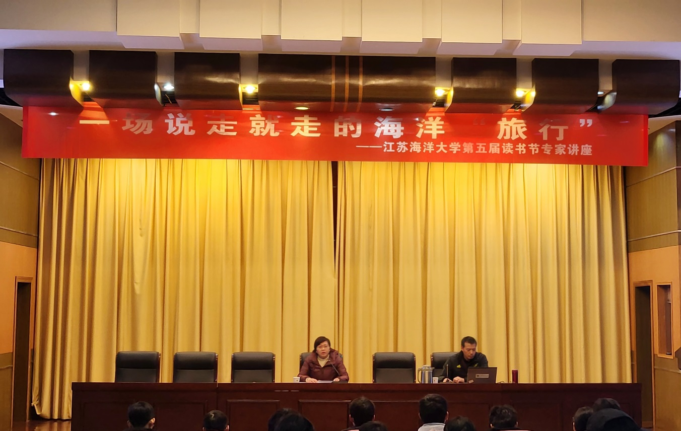 12月13日下午,第五届读书节海洋知识讲座在文博楼报告厅举行,海洋科学与水产学院高级实验师李士虎应邀做了“一场说走就走的海洋‘旅行’”学术讲座,讲座由图书馆副馆长胡昌芹主持,160余位师生聆听了本次讲座。