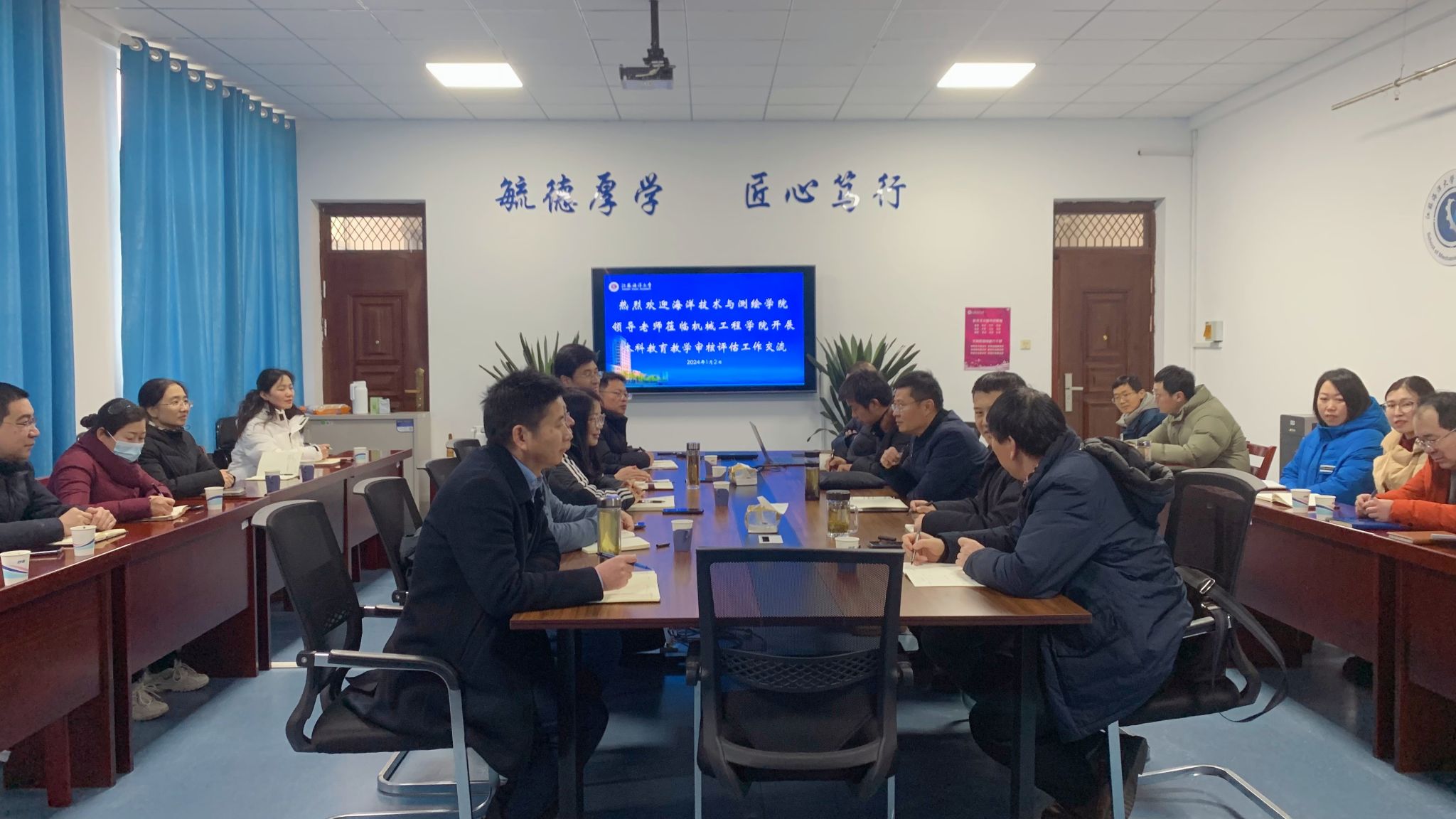为进一步落实立德树人根本任务,全面迎接本科教育教学审核评估工作,推进海洋技术与测绘学院本科教育教学工作高质量发展,1月2日下午,海洋技术与测绘学院党委书记王晶、院长孙佳龙带队一行12人赴机械工程学院调研学习本科教育教学审核评估工作。