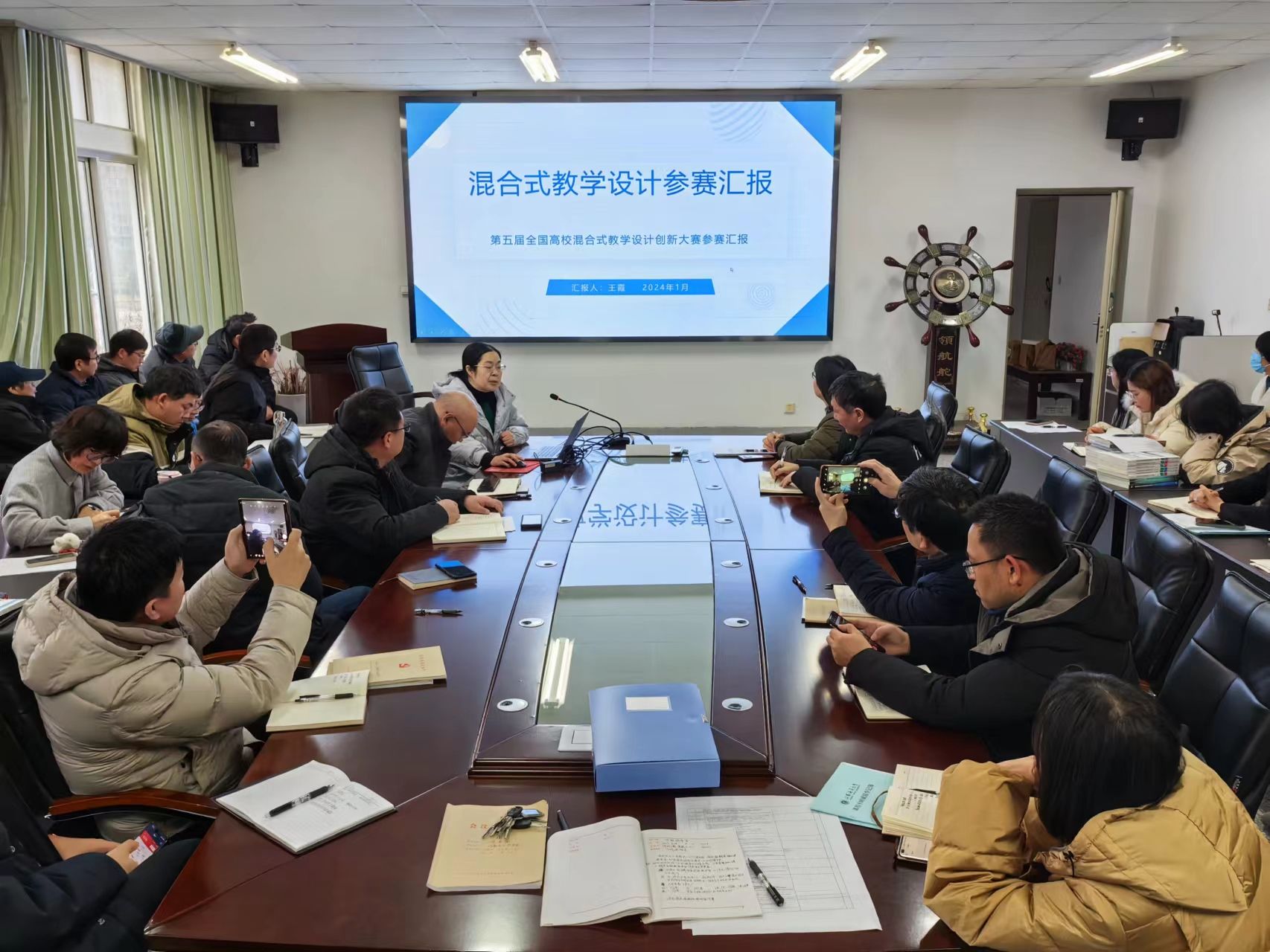研讨会上,王霞老师对大赛目的、意义、赛事特点等进行了较为详尽的介绍,并结合自己的参赛经历,从教学日历填写、教学方案设计、说课PPT制作、视频录制等多个环节面与获奖的优秀作品进行了比较分析,并给出了积极留存教学过程资料、注意做好单课次的考核评价、教学反思及采用多种教学手段调动学生积极性等多条宝贵的教学建议。会议期间,与会老师们就如何开展混合式教学、如何解决混合式教学中的“难点”和“痛点”进行了交流。会议气氛热烈,研讨充分。
