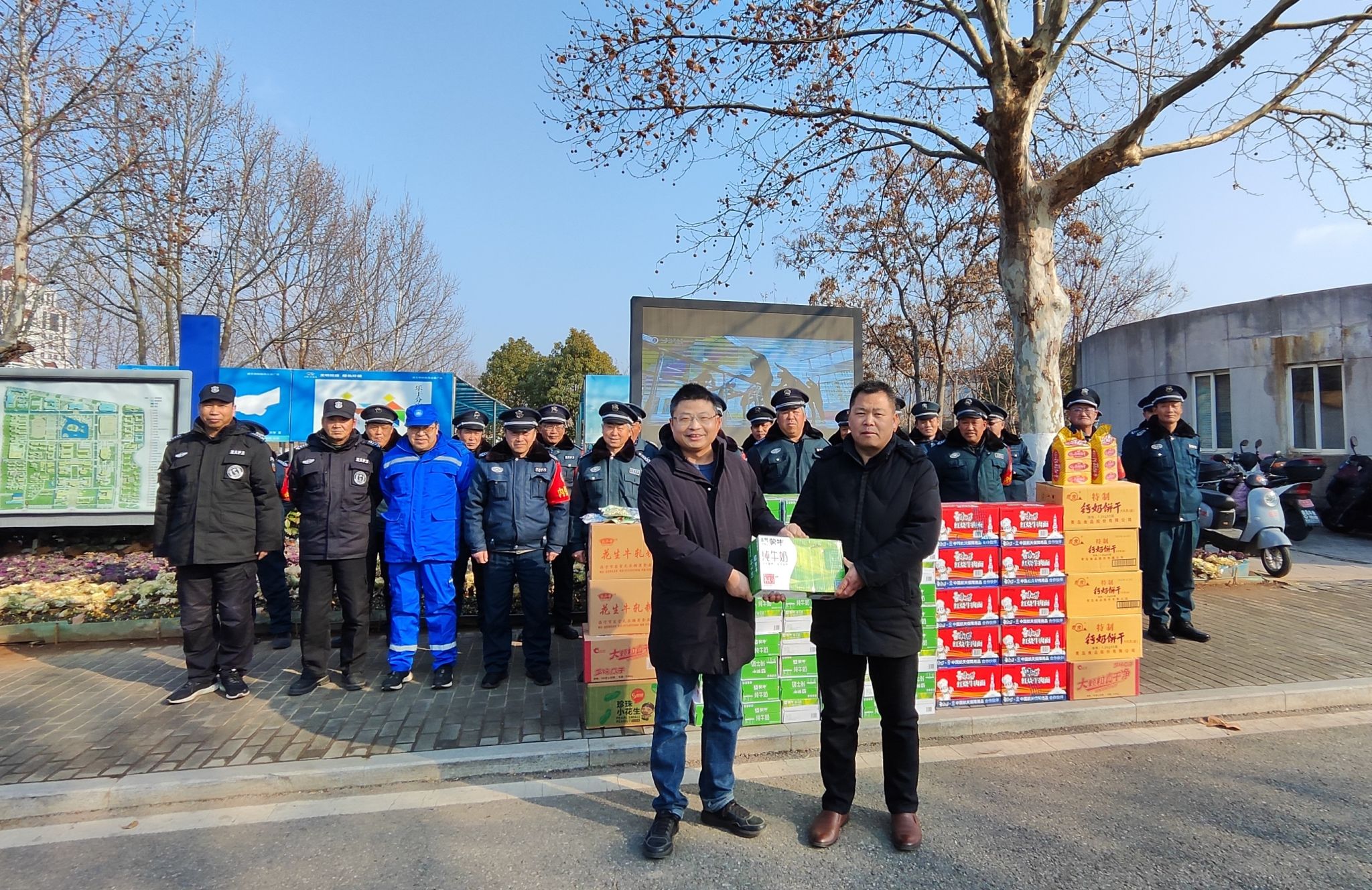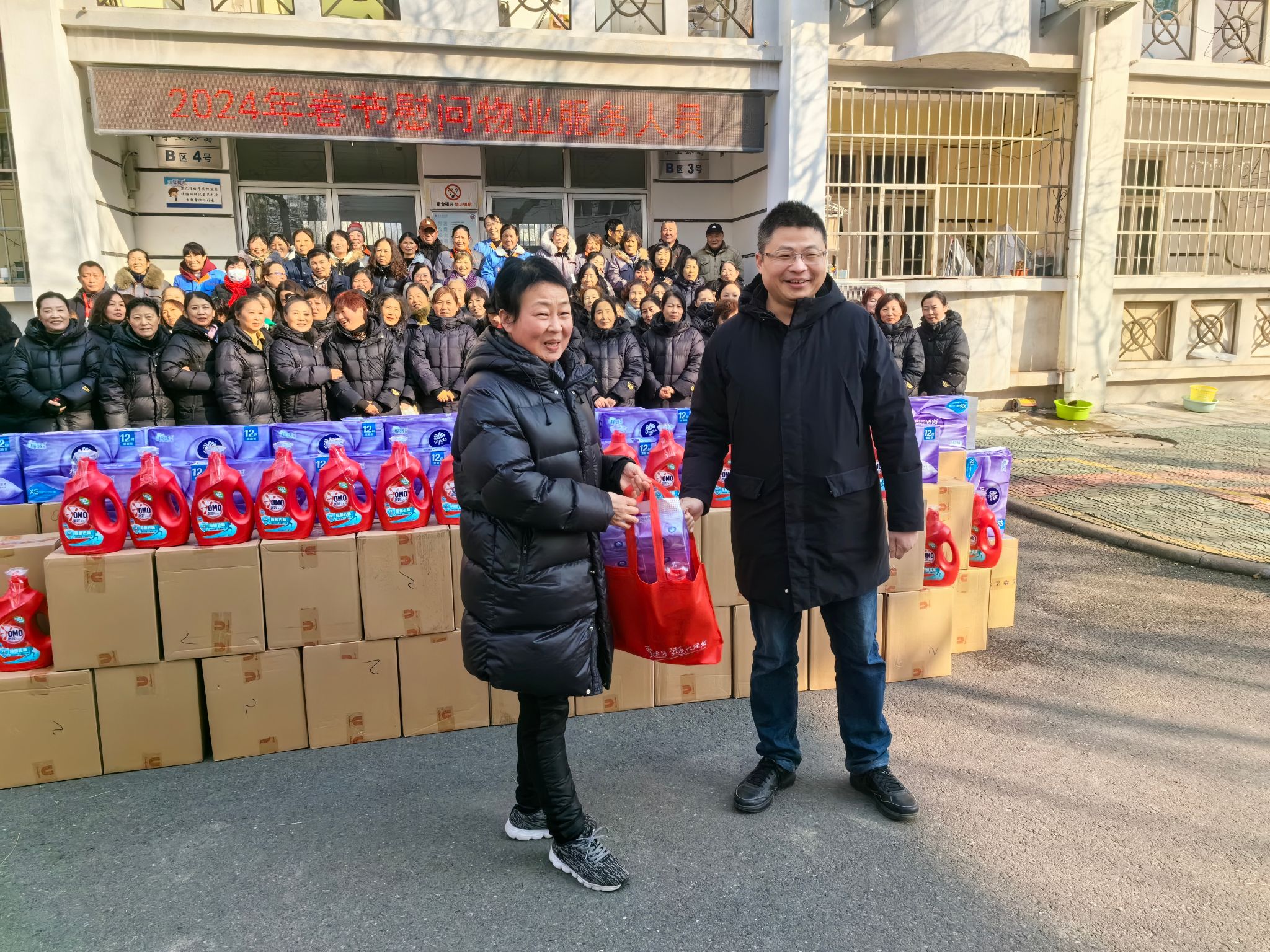 辰龙迎春,祥和安泰。在2024年寒假开始之际,1月21日下午,党委常委、副校长朱国军在党委保卫部、党委学生工作部负责人的陪同下,分别走访慰问寒假值班安保人员和公寓物业服务人员,为他们带去学校的关怀与温暖,并提前送上新春祝福。