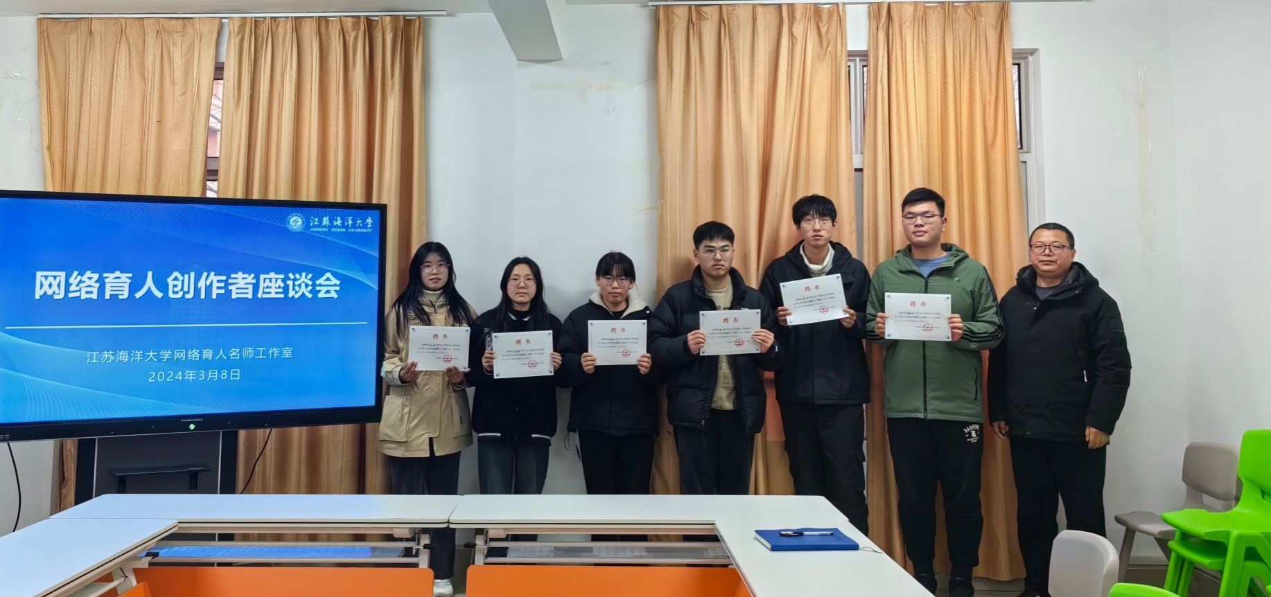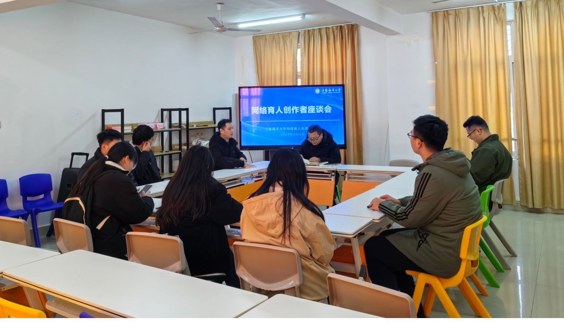 3月8日下午,一场以“做好大学生网络育人”为主题的网络育人创作者座谈会在A9A10一站式学生社区会议室召开。海洋食品与生物工程学院党委副书记、网络育人名师工作室负责人郭利,辅导员吴凡、陈丽媛、杨鑫暖,6位学生创作者共同参加座谈会。座谈会由郭利主持。