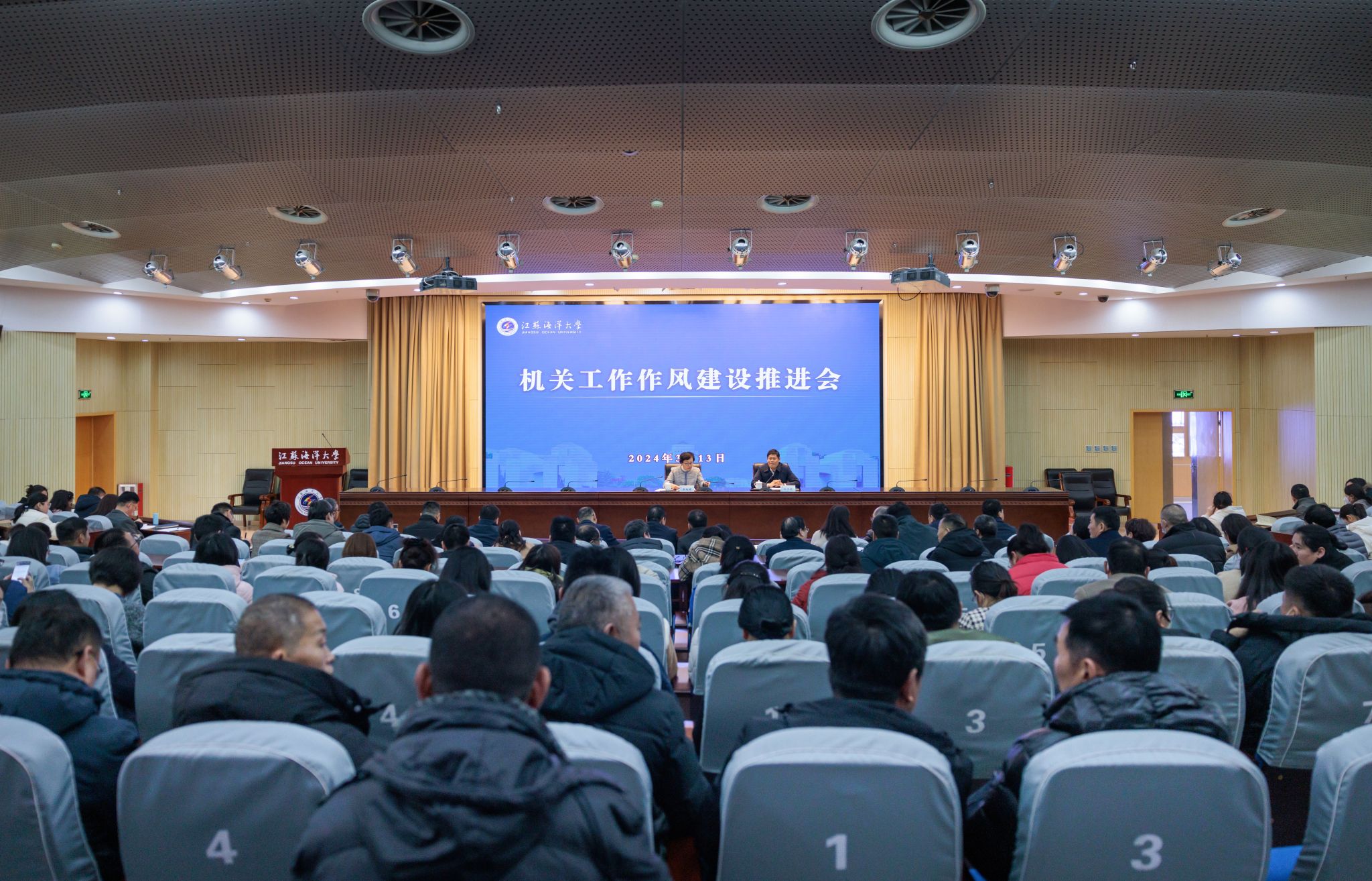 为深入贯彻学校第一次党代会精神,下大力气推动机关转变工作作风、优化服务质量,3月13日,我校在会议中心黄海厅召开全体机关工作人员大会,深入推进机关工作作风建设。校党委副书记李梅英出席会议并讲话。会议由机关党委书记汪守建主持。