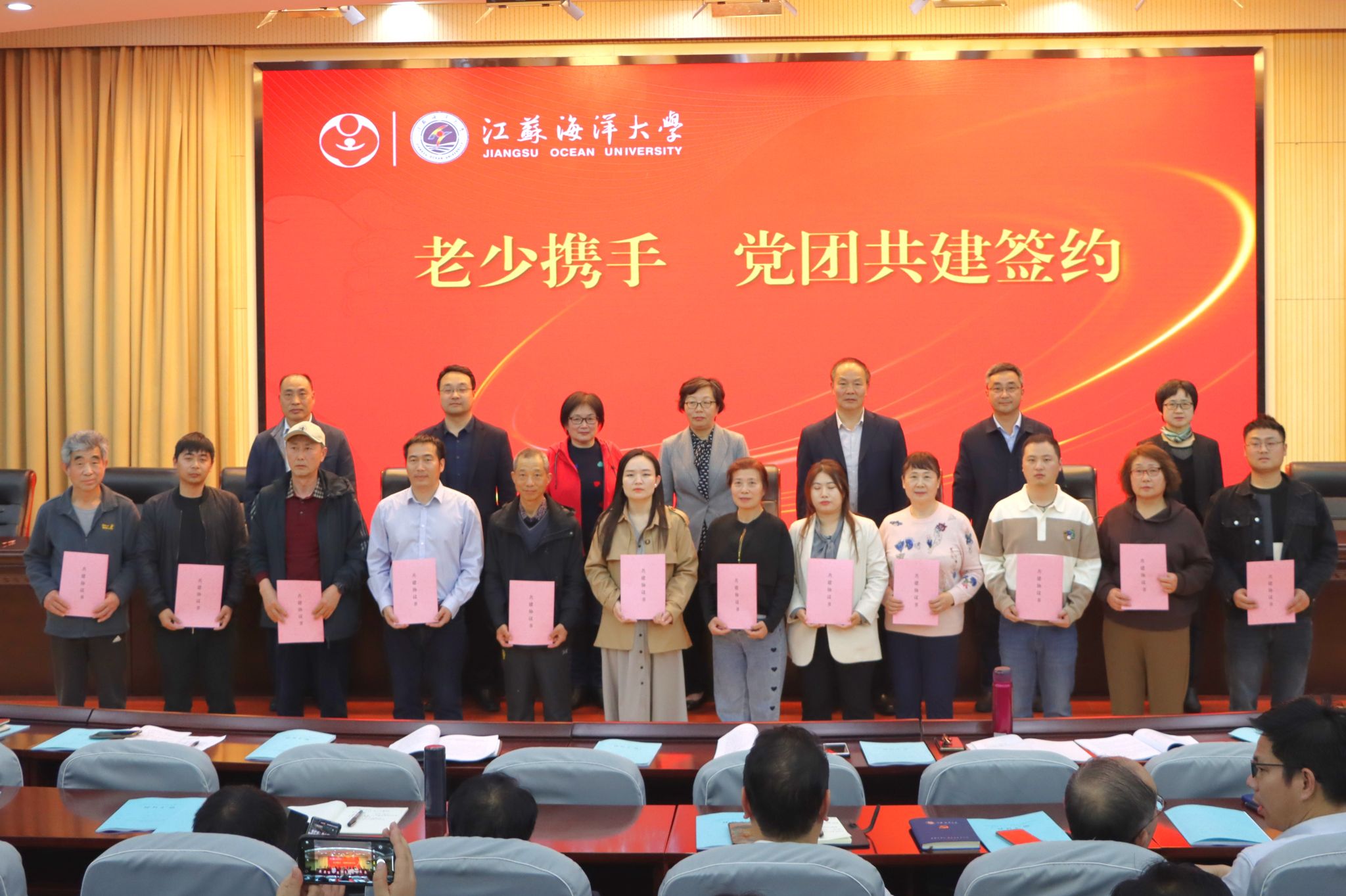 会上。离退休党工委所有离退休党支部分别与土木与港海工程学院学生第一党支部等12个学院师生党支部、分团委集中签署协议,按照“以党建带关建促团建”的要求,老少携手开展党团共建,发挥引领、凝聚、服务青年的作用,推进学校事业高质量发展,为实现学校党代会绘就的“三建一高”宏伟蓝图做出新贡献。