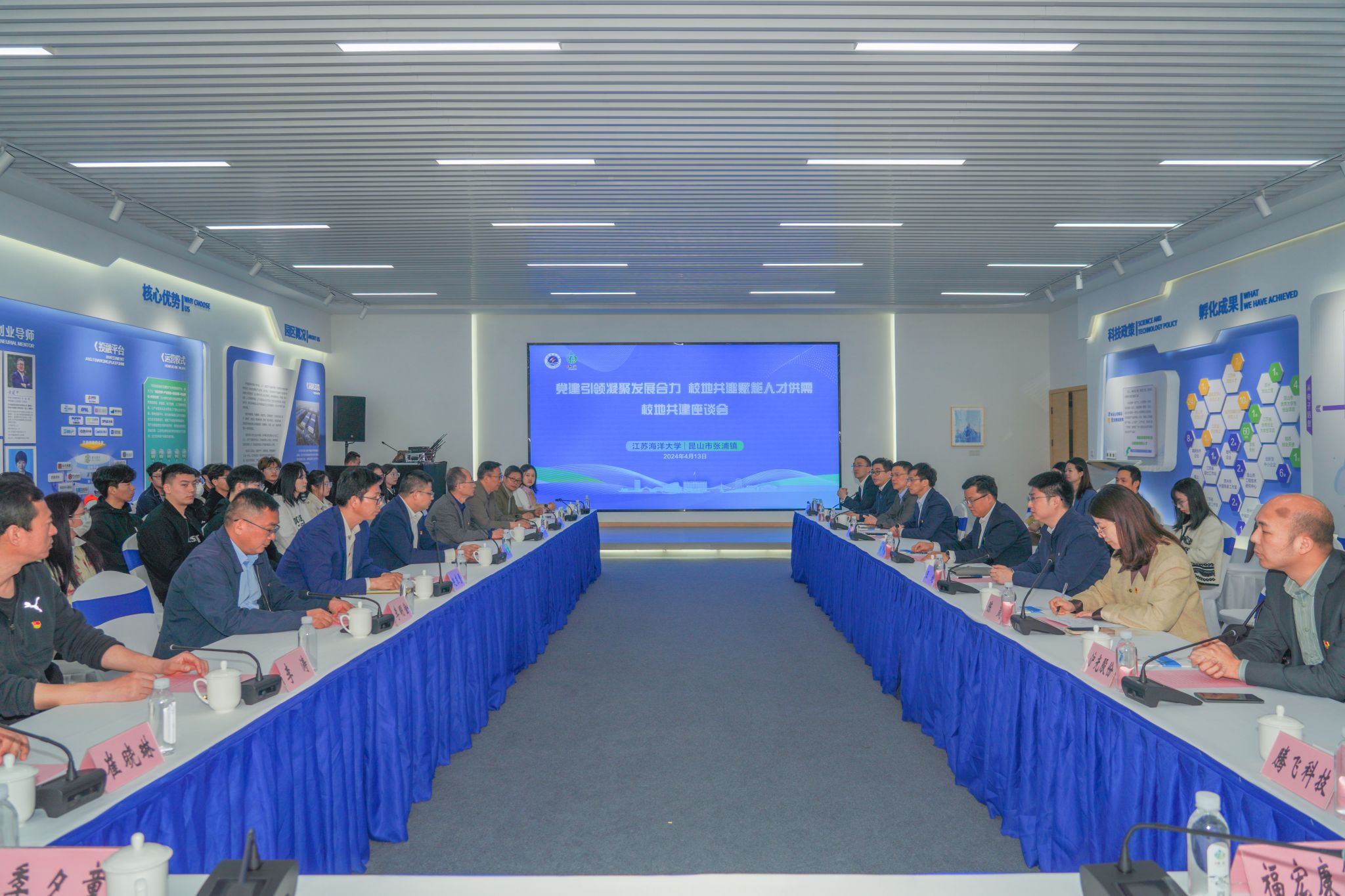 4月13日,我校和昆山市校政企对接交流活动在东南大学国家大学科技园(昆山)成功举办。副校长朱国军,招生与就业处处长马恒通、副处长骆海宏,应用技术学院党委书记赵求勇、党委副书记时树奎、副院长李明金,昆山市副市长钱许东,科技局党组成员、副局长陈岚,人社局党组成员、人力资源管理服务中心主任王建龙,张浦镇党委书记王超,党委副书记张志灏,党委组织委员沈晓峰,副镇长吴钢,张浦镇重点企业负责人以及我校27名有意赴昆山就业的毕业生代表参加座谈会。