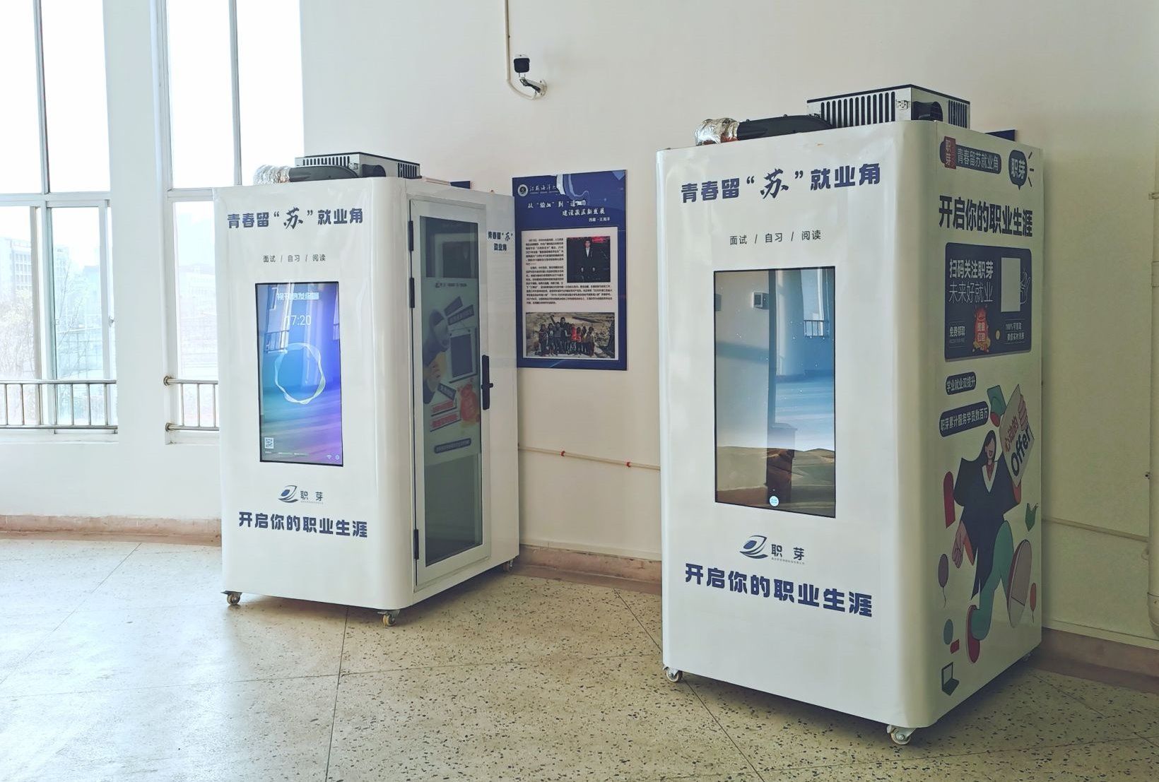 今年,2000平方米的校就业服务大厅全面升级,新增80个标准招聘展位,各类招聘活动如火如荼开展,就业指导中心入驻服务大厅,及时为学生提供就业手续办理、政策咨询、简历指导、简历打印等各类服务。4个网络面试亭分别在图书馆和就业服务大厅安装完成,为学生提供网络面试和就业信息查询等贴心就业服务。