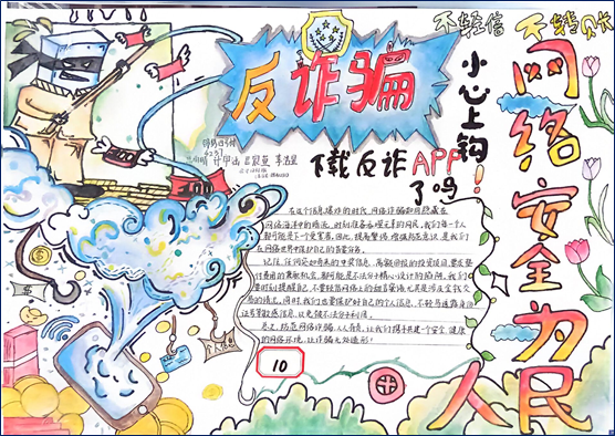 本次防诈骗手抄报活动的成功举办,充分体现了我校大学生积极向上的精神风貌和较强的自我教育意识。通过此次活动,我校学生更加深入地了解了诈骗的危害和防范方法,纷纷表示今后将更加注意保护自己的信息及财产安全。同时也会将防诈骗知识传播给身边的人,共同筑牢防范诈骗的防线。