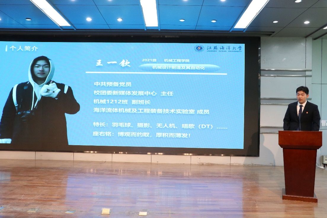 各候选人从思想政治、学业成绩、工作实践及志愿服务等方面,全面展示了他们丰富多彩的大学生活和积极向上的精神风貌。海洋技术与测绘学院的胡晶同学以优异的成绩和扎实的专业知识,展现了当代大学生的学术追求和学术风采,她积极参与科创项目、社会实践,勇担自己作为时代接班人的重担。机械工程学院的王一钦同学用幽默风趣的话语展示了他的硬核实力,他围绕着“坚定信念”、“勤学善思”、“矢志创新”、“厚植实践”四个方面,诠释了一名行稳致远、进而有为的大学生风貌。环境与化学工程学院的“追光女孩”王佳仪同学,是善做崇学敏思的“有心人”,是争做履行职责的“领头雁”,有淬炼科研素质的“原动力”,有涵养赤诚不朽的“奉献心”。