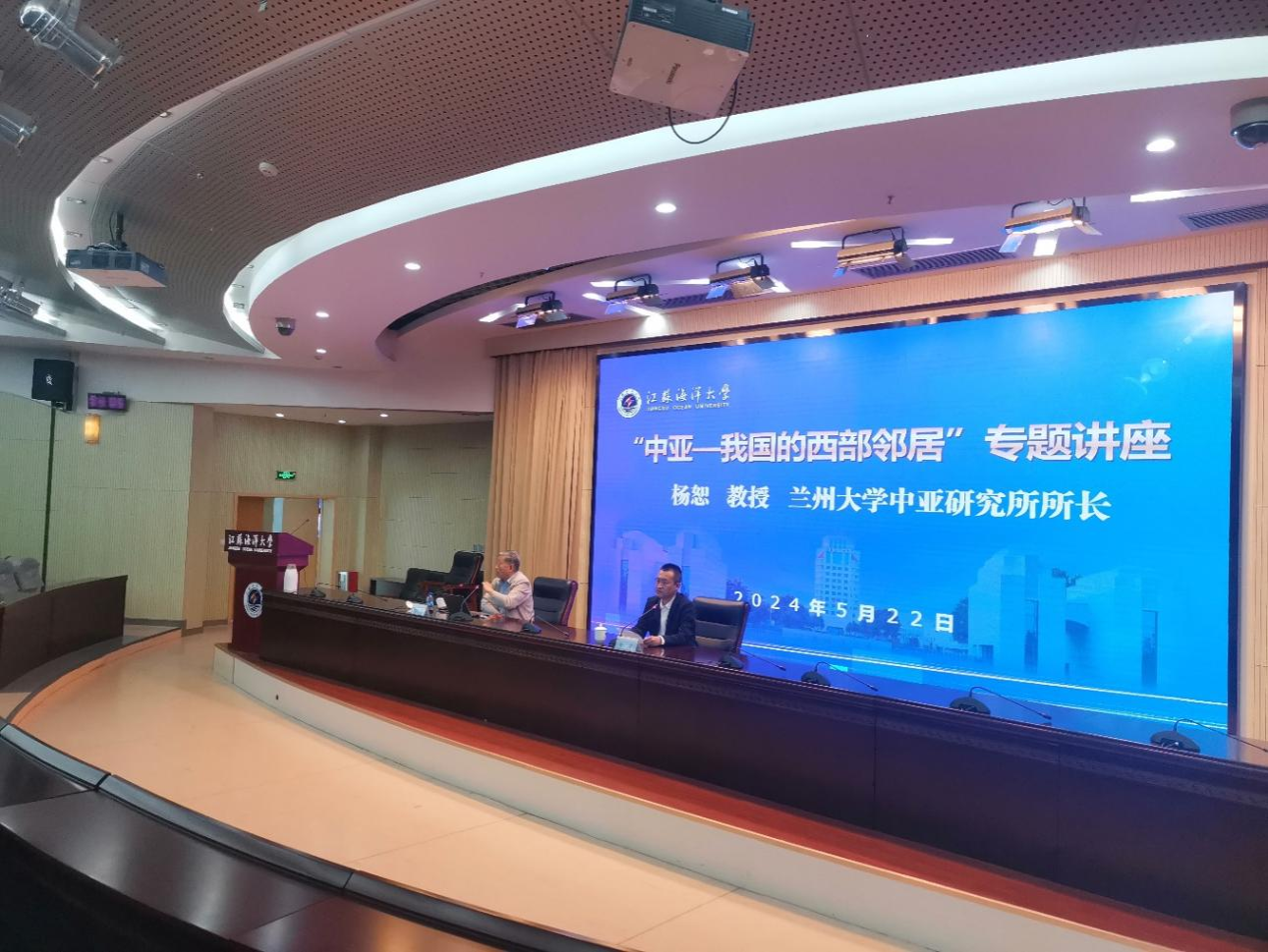 2024年5月20日下午,新亚欧陆海联运通道研究院邀请了兰州大学原副校长,现中亚研究所所长杨恕教授和清华大学“一带一路”战略研究院院长助理池昊涵在校学术中心东海厅举办了主题为“深化学术交流,共促‘一带一路’发展”学术交流会。江苏海洋大学副校长、新亚欧陆海联运通道研究院院长申欣主持会议。校相关职能部门、相关学院领导以及教授、副教授、博士等50多人参会,共同探讨了“一带一路”倡议下的亚欧陆海联运通道建设、区域经济发展及法律服务等议题。