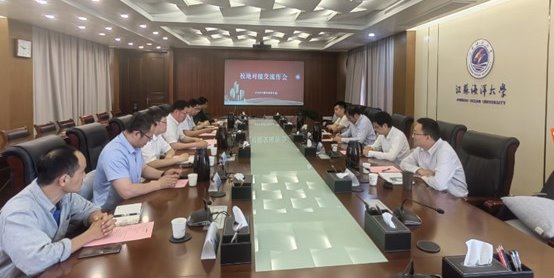 戴红伟向前来开展校地对接活动的邓晶团长一行表示热烈欢迎,并详细介绍了我校近年来科研及科技服务产业的情况。他介绍,学校博士点创建设工作正值关键时期,为充分发挥学校的科技、人才优势,助推学校科技成果转移转化,学校2023年在镇江市润城区布局并建立江苏省海洋资源开发研究院数智低碳院、江苏海洋大学镇江技术转移中心两个载体,大力推动学校科研服务与镇江市产业的融合发展。经过一年多来的运行和探索,相关政产学研合作取得了初步成绩。希望通过本次对接交流,双方能够进一步加大合作深度,努力促成更多的政产学研合作成果。