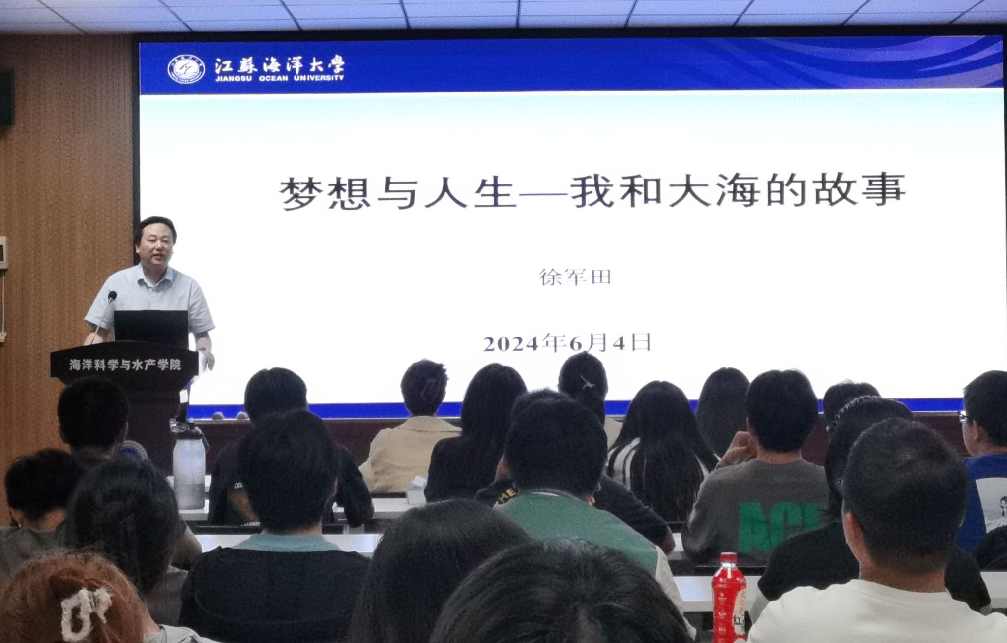 6月4日晚,海洋科学与水产学院举行大学生生涯规划教育讲座,副校长徐军田以“梦想与人生——我和大海的故事”主题作专题讲座,60余名学生骨干参加活动。