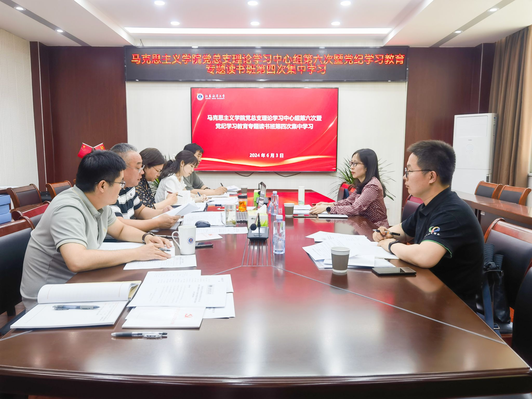 6月11日,文法学院党委召开理论学习中心组第四次集中学习暨党纪学习教育专题读书班第三次集中研讨会。党政办主任张建领学《中国共产党纪律处分条例》第七章内容,院长吴明忠对《中国共产党纪律处分条例》第七章进行整体解读,新闻广告系党支部书记邱立楠、公共管理系党支部书记杨殿闯依次领学了党的组织纪律建设相关内容。学生第一党支部书记赵亚婷领学了《习近平关于应急管理的重要论述》。副院长兼纪律委员颜金、党委副书记王国银分别做了重点发言。党委书记魏范青剖析了违纪典型案例、解读了江苏省高校党纪学习教育工作主要精神,布置近期党纪学习教育主要工作,推进党纪学习教育走深走实。与会人员还共同观看了《安全生产月主题宣传片》。