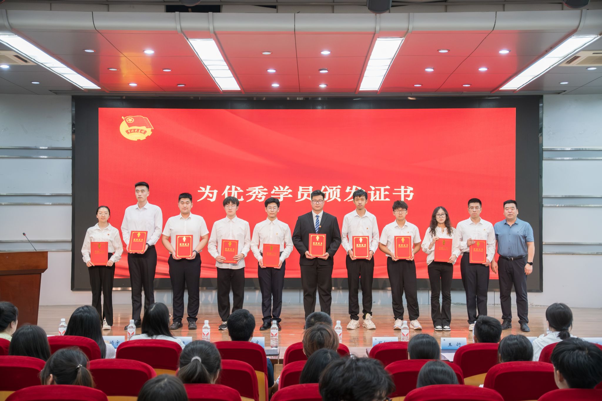 开班仪式上,班主任周小晓宣读了第十五期青马菁英班结业学员以及优秀学员名单。校工会副主席郑红斌、校团委副书记付免分别为优秀学员代表和结业学员代表颁发证书。第十五期青马菁英班优秀学员代表葛浩麒和大家分享了自己过去一年的学习心得与收获。文法学院黄薪卉作为新学员代表发言,表示要坚定理想信念,争当先锋模范,做马克思主义的坚定拥护者、实践者和积极传播者。