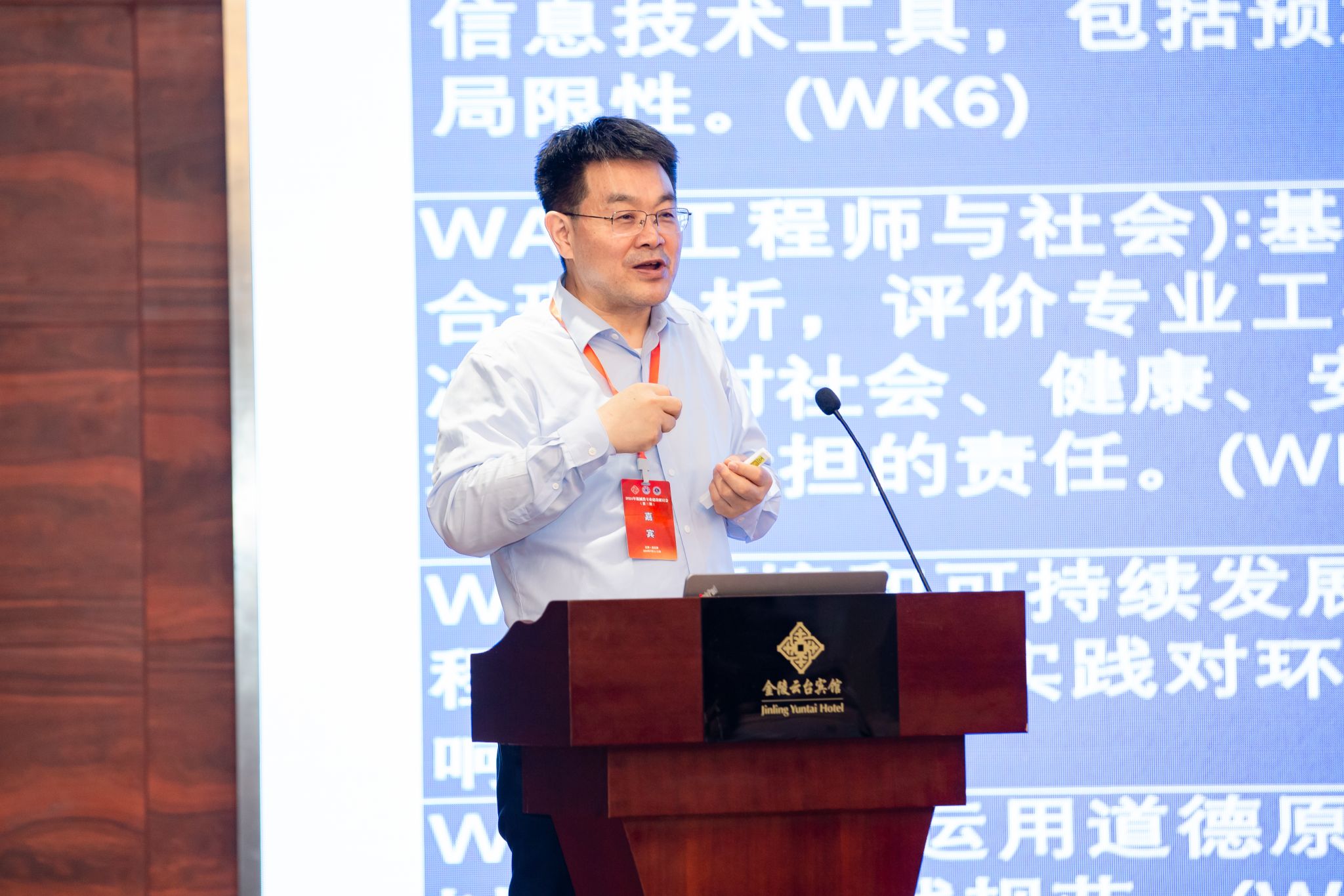 华中科技大学国家CAD支撑软件工程技术研究中心(武汉)副主任,工程教育专业认证机械类专业认证核心专家王书亭教授的报告题目为《工程教育专业认证标准研究与启示》,他分享了工程教育专业认证标准的最新研究成果,并结合案例分析,阐述了如何将认证标准融入专业建设全过程。