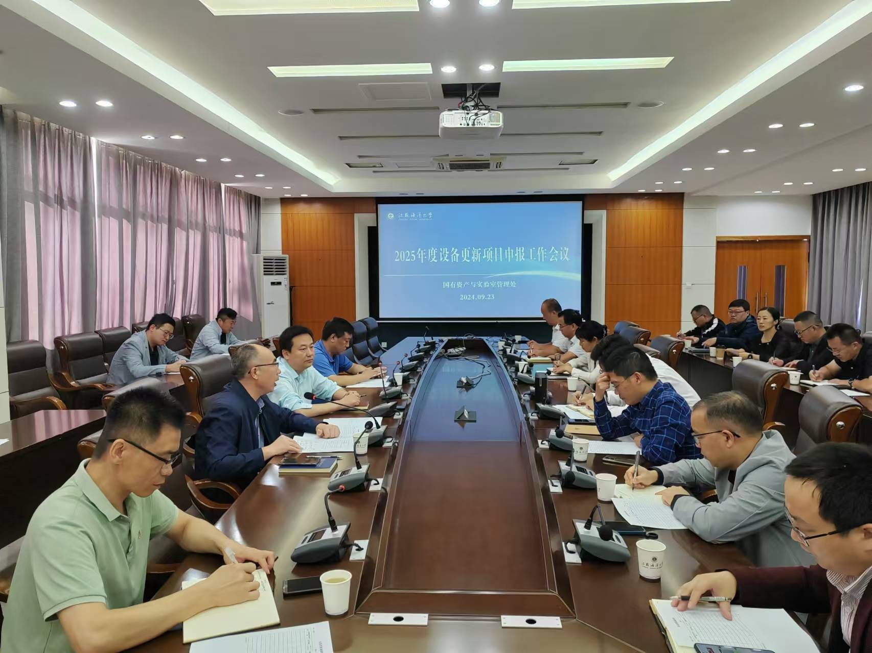 9月23日上午,我校在文渊楼会议室召开2025年设备更新项目申报工作会议。副校长徐军田主持会议。各二级单位实验室工作负责人、国有资产与实验室管理处及财务处相关人员参加会议。