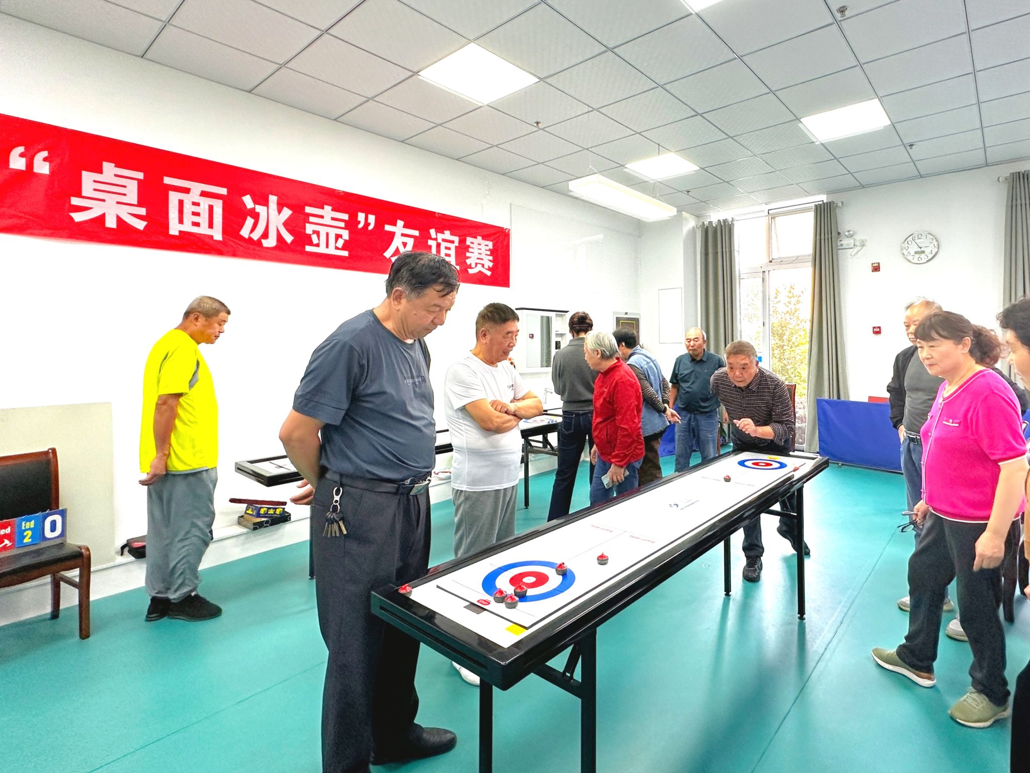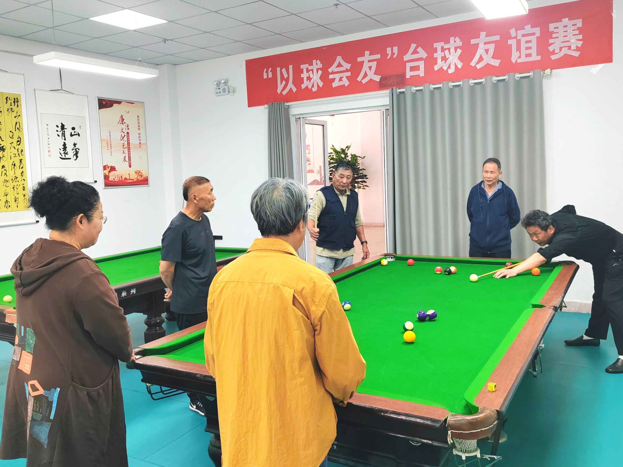 “以球会友”台球友谊赛和桌面冰壶比赛