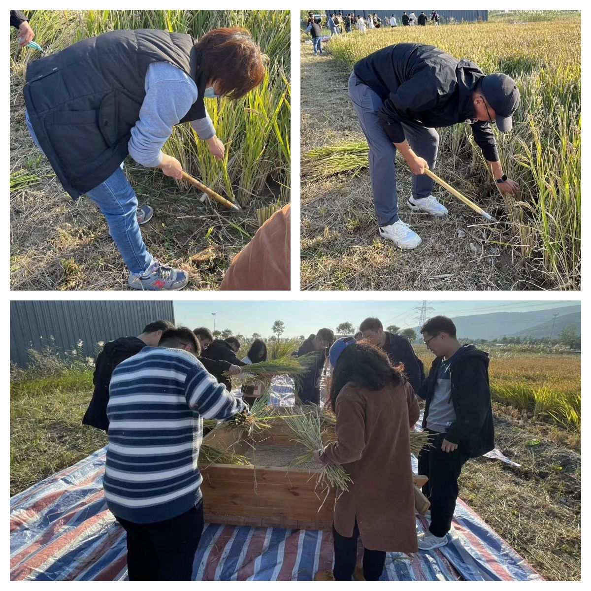 在智慧农业田园综合体实践教育基地,基地负责人为教师们讲授了我国水稻的种植历史和在国家粮食安全中的重要地位、水稻的传统种植及现代化种植技术和农具操作基本要领,并演示了相关操作方法。在农技老师的指导和带领下,通过亲身下田体验全手工收割与脱粒、舂米,磨米“四部曲”的过程,老师们切实认识到了“粒粒皆辛苦”的不易和农业技术现代化的重要意义。