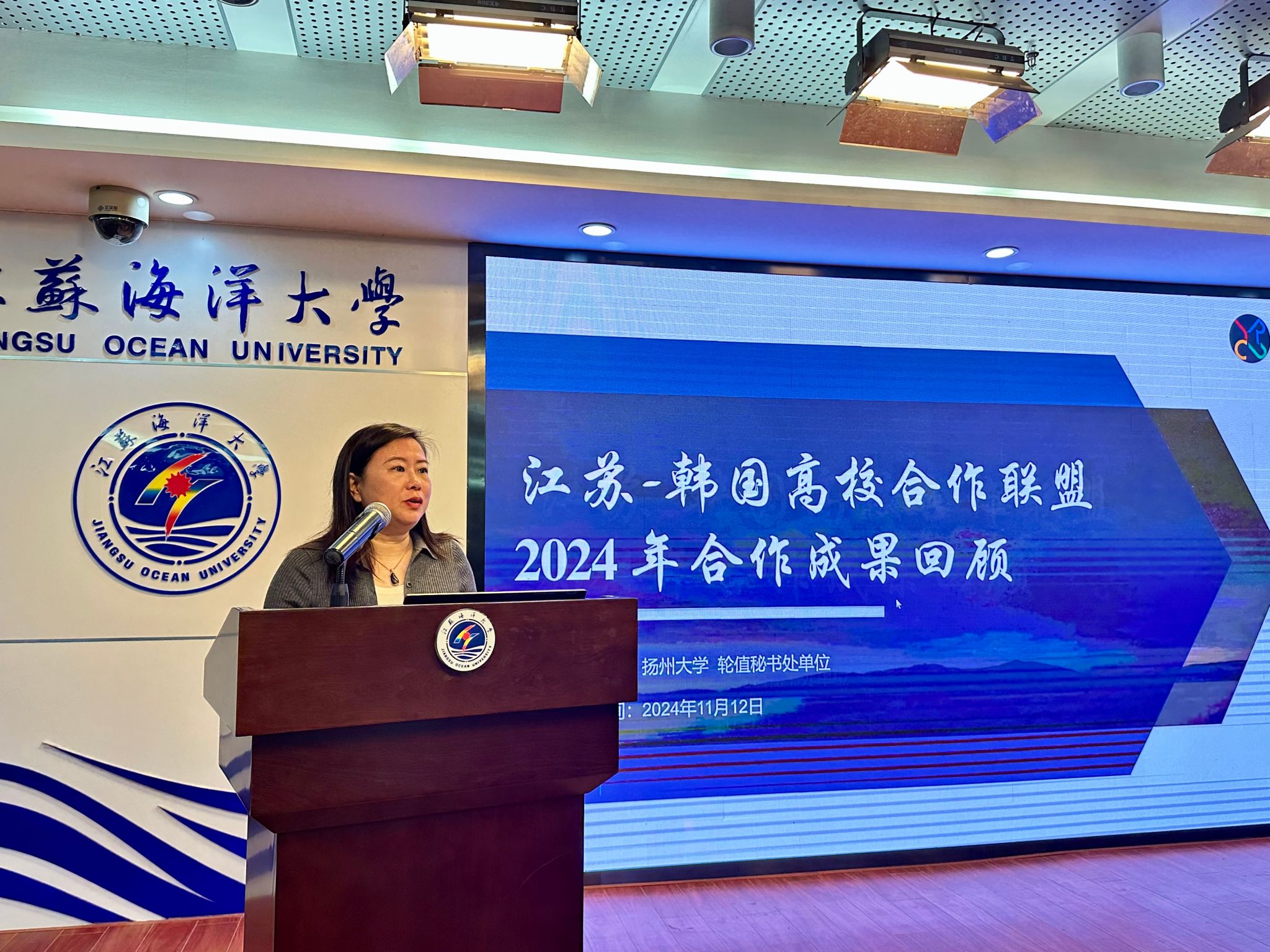 11月12日,江苏-韩国高校合作联盟2024年会在我校顺利召开。本次年会由江苏-韩国高校合作联盟轮值主席单位江南大学、联盟轮值秘书处单位扬州大学主办,江苏海洋大学承办。来自江苏-韩国高校合作联盟成员高校30余名国际交流合作相关部门负责人及代表参加年会。我校副校长张元良出席年会并致辞。年会由国际交流与合作处处长韩小杰主持。