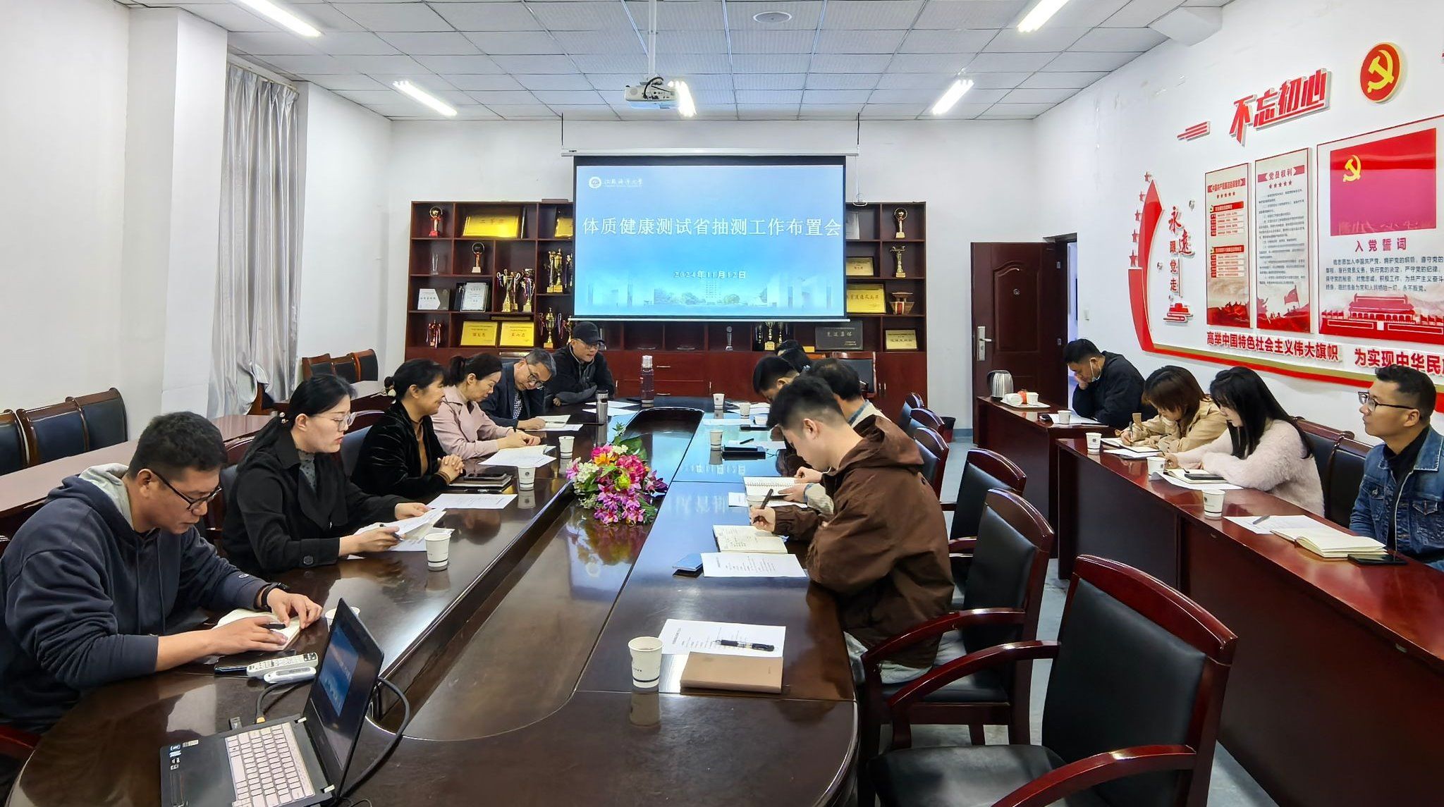 为扎实推进2024年江苏省教育厅学生体质健康抽测相关工作,11月12日下午,我校在体育学院会议室召开了省抽测工作布置会。教务处、后勤与基建管理处、体育学院相关工作负责人以及被抽测的7个二级学院副书记和辅导员参会,会议由体育学院党总支副书记李淑华主持。