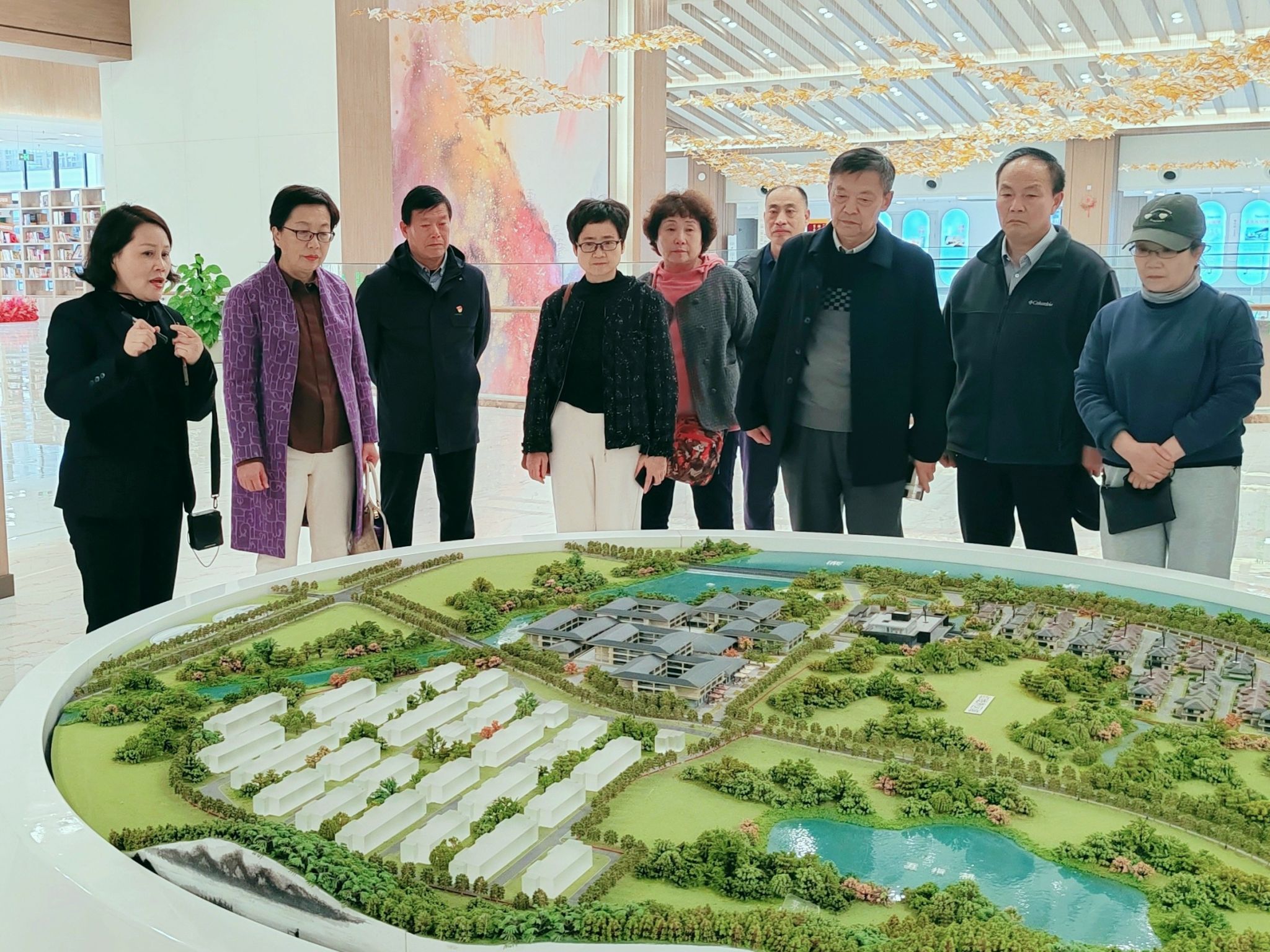 在颐养中心经理周闻立、韩琍的陪同下,调研组一行考察了颐养中心的养老合院、养老公寓、中医理疗中心、康复理疗中心、小镇诊所以及文化生活配套设施,参观了医药特色公园、康缘农场等养生谷周边环境。参观过程中,调研组一行详细考察了餐厅、健身房、棋牌室、书院、茶吧、超市等情况,与管理人员以及入住的老同志互动交流,详细了解养生谷的管理运行、服务机制、和入住老同志的真实感受。大家还沉浸式体验了中医养身服务项目、中医药膳和文体活动。