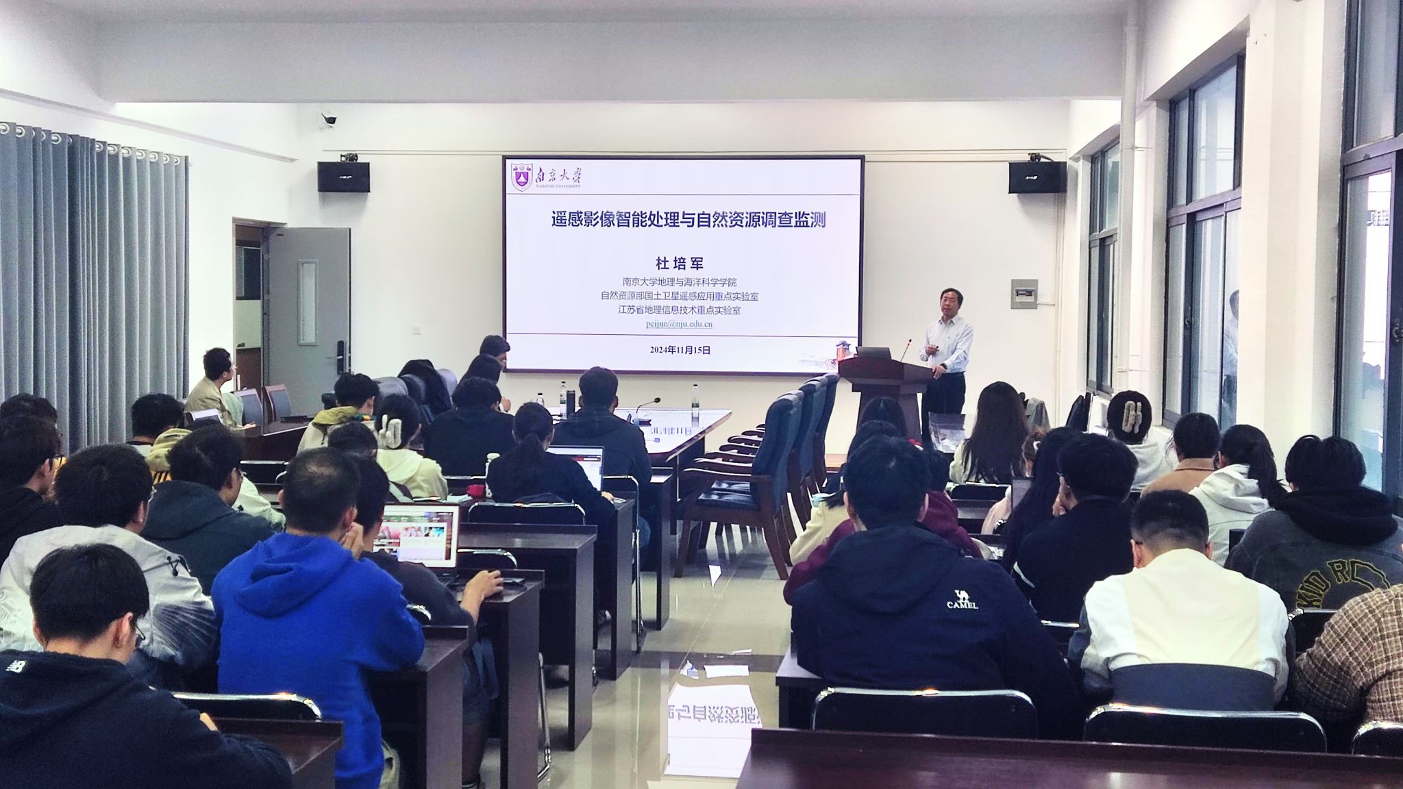 为加强遥感学科建设,提高学院师生在遥感领域的创新意识和能力,11月15日下午,教育部长江学者特聘教授、中国测绘学会摄影测量与遥感专业委员会副主任委员、南京大学博士生导师杜培军教授在测绘楼508会议室为海洋技术与测绘学院师生做了题为“遥感影像智能处理与自然资源调查监测”的学术报告,报告会由孙佳龙主持,专任教师和研究生共80余人参加了报告会。