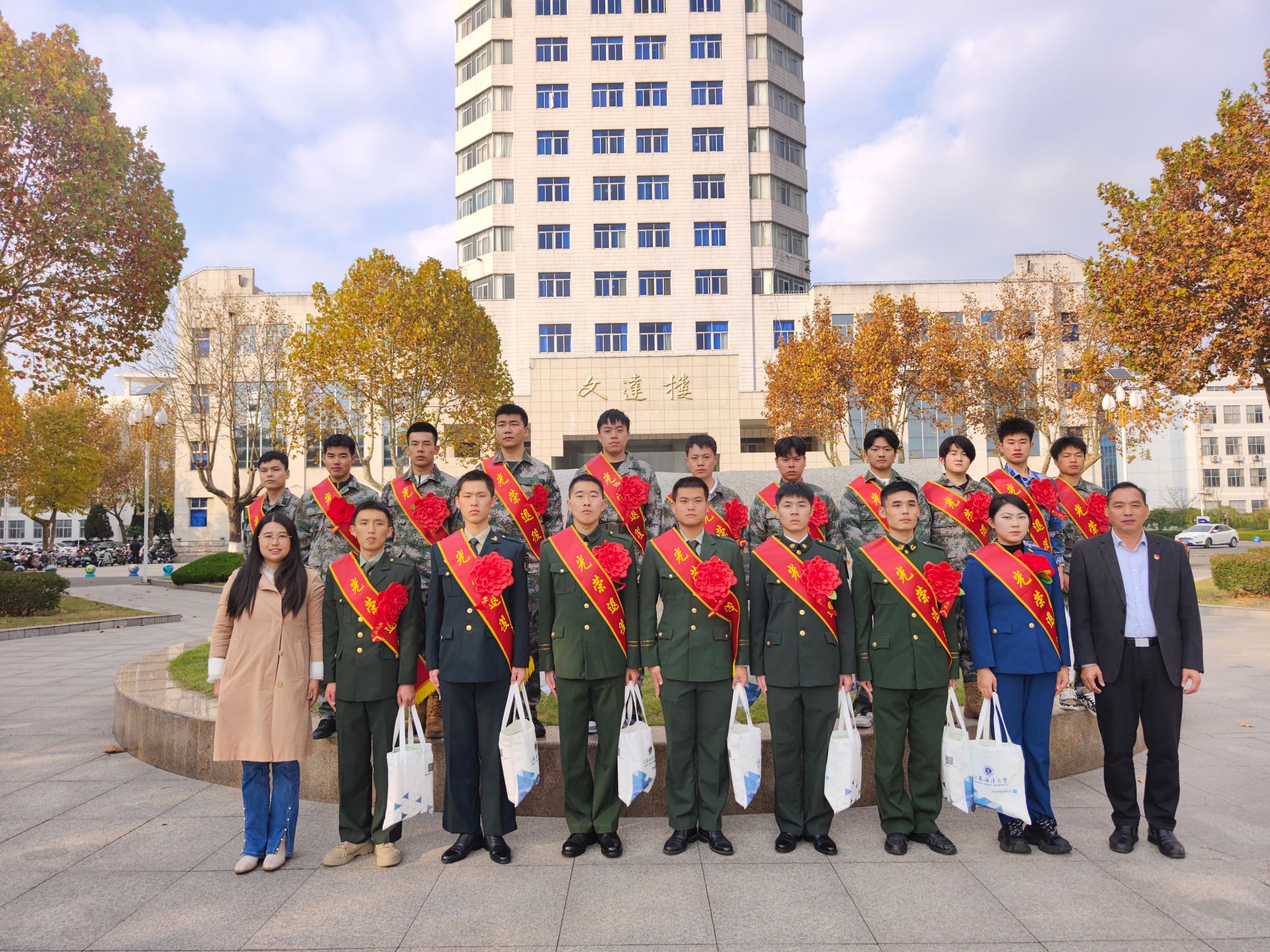 为做好退役大学生复学帮扶,落实慰问关怀,11月20日下午,人民武装部在文渊楼161会议室举行2024年退役大学生欢迎仪式暨座谈会。校人民武装部副部长张志浩、2024年退役大学生代表参加了欢迎仪式。