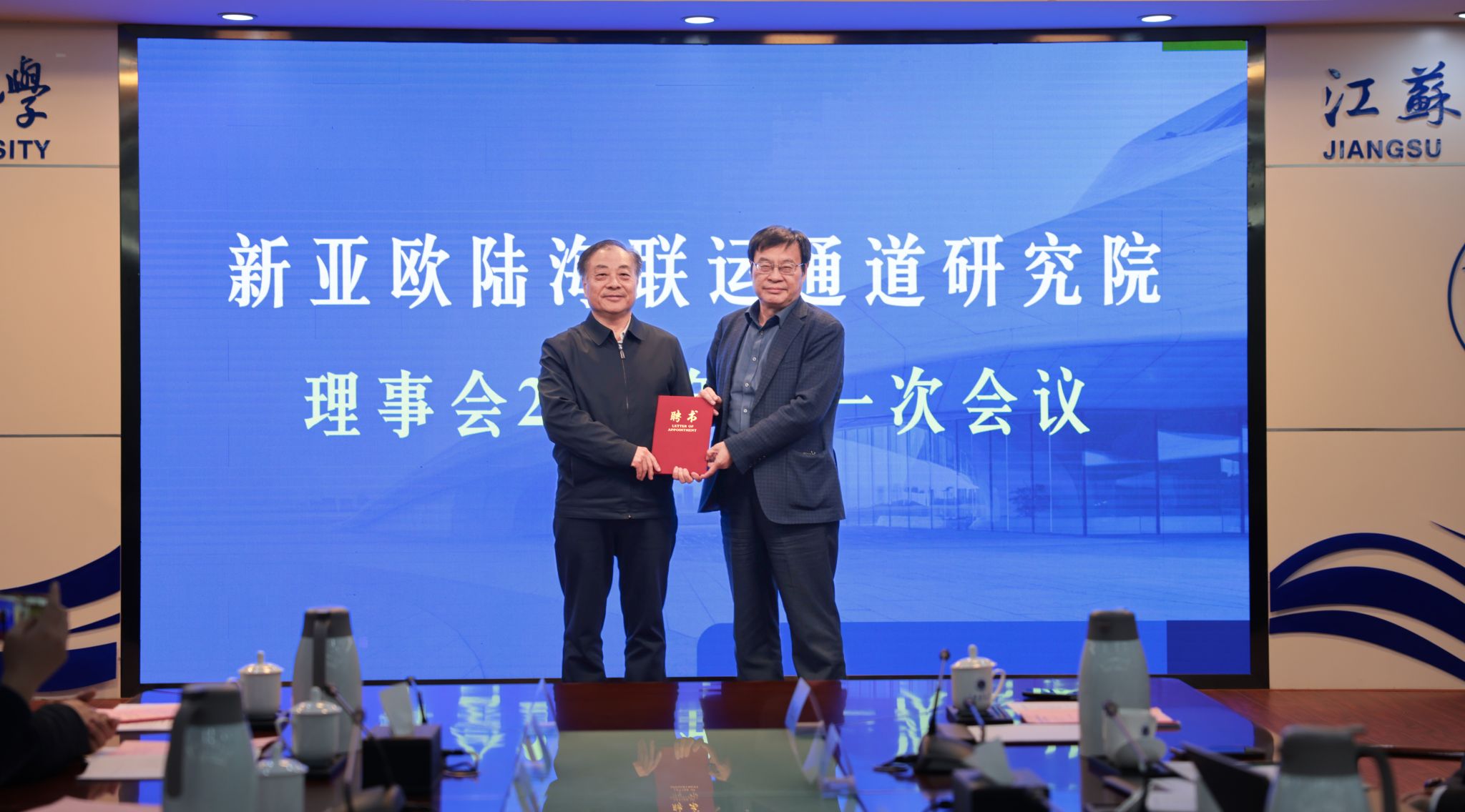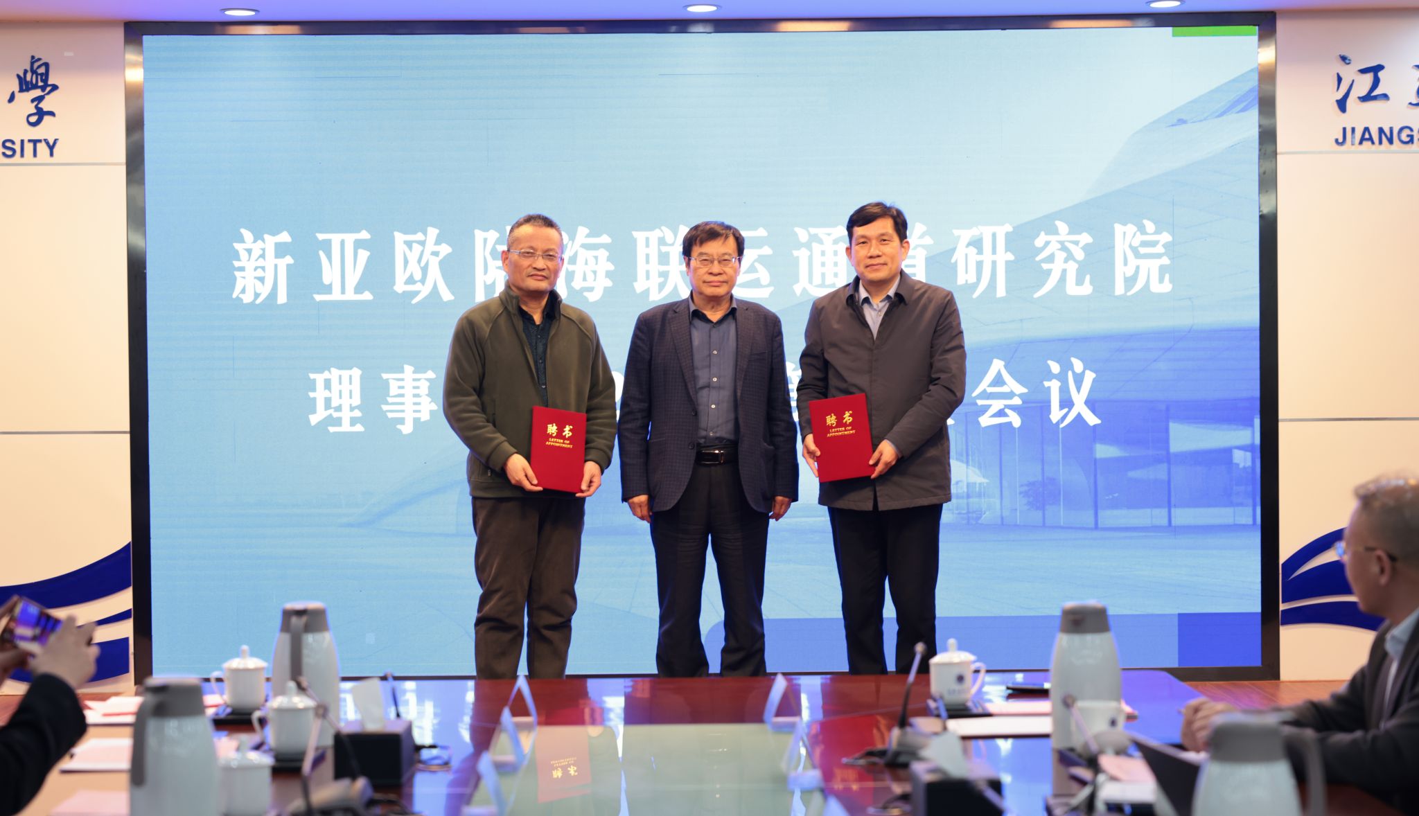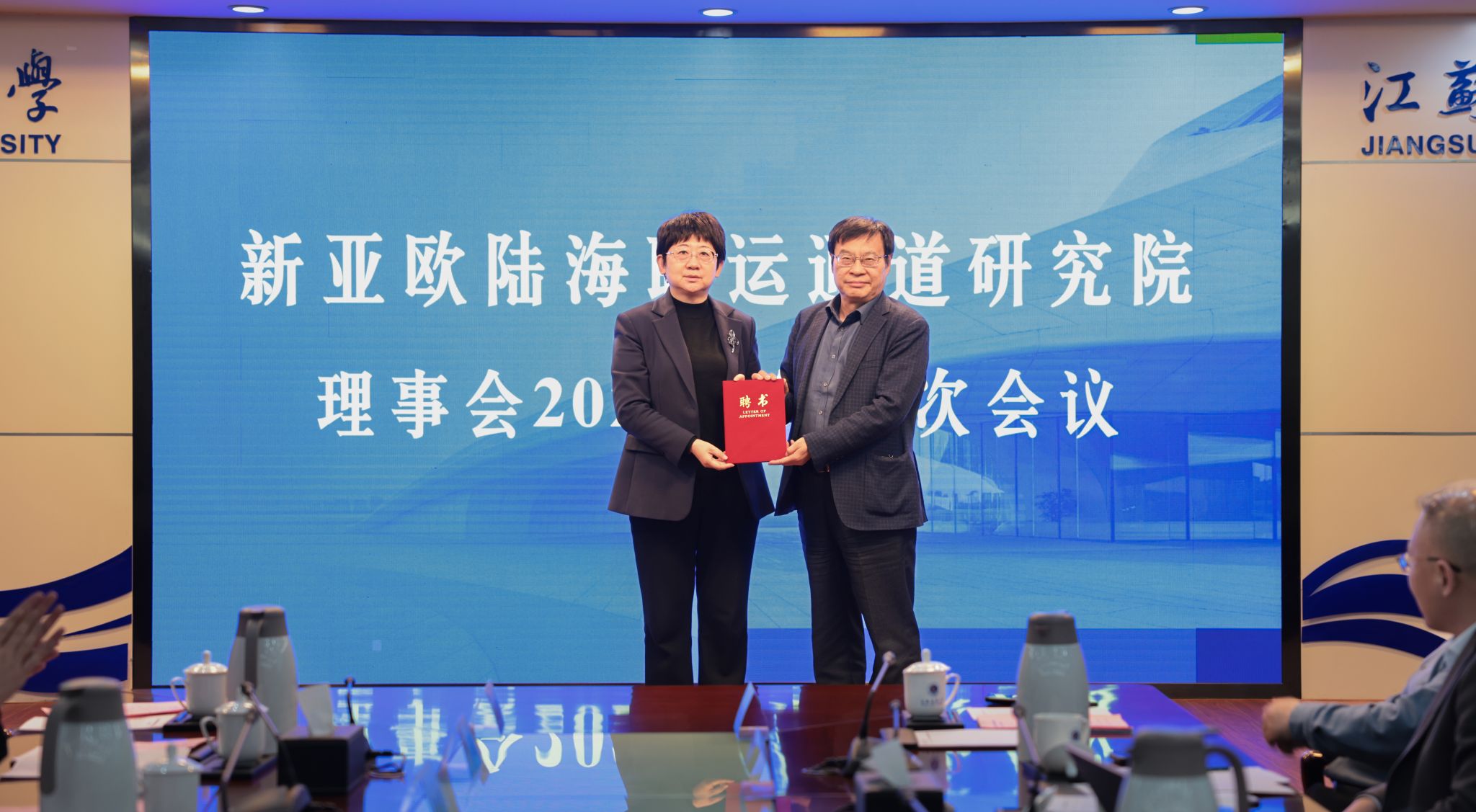 理事会根据新亚欧陆海联运通道研究院工作管理办法,经连云港市人民政府同意,完成研究院理事会理事长换任工作。聘请韦怀余为理事会名誉理事长,李莉为新任理事长,商显福和陈晓平为研究院特聘研究员,并颁发聘书。