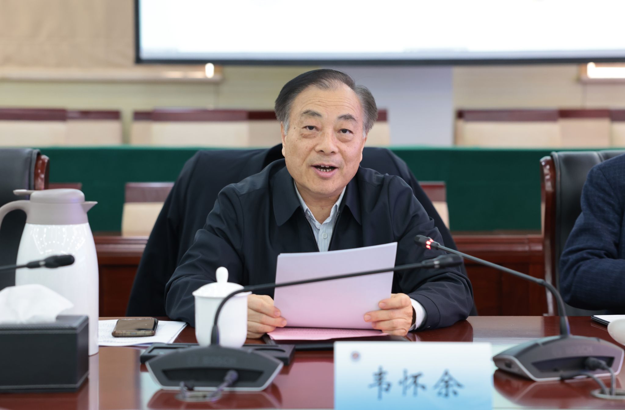 韦怀余致辞,指出研究院自第一次理事会召开以来,紧紧围绕共建“一带一路”尤其是新亚欧陆海联运通道高质量发展,在研究能力、国际合作、服务项目、自身建设等方面取得了令人满意的成绩。同时也指出,研究院下一步要主动把握机遇,聚焦关键问题,以研究促行动,以合作破壁垒,推动通道从“物理联通”迈向“规则联通”和“智慧联通”,应重点从深化课题研究、当好决策智囊,拓宽交流渠道、推动务实合作,促进成果转化、服务实践应用,强化资源整合、构建协同网络,加强自身建设、推动可持续发展等方面进一步开展工作。