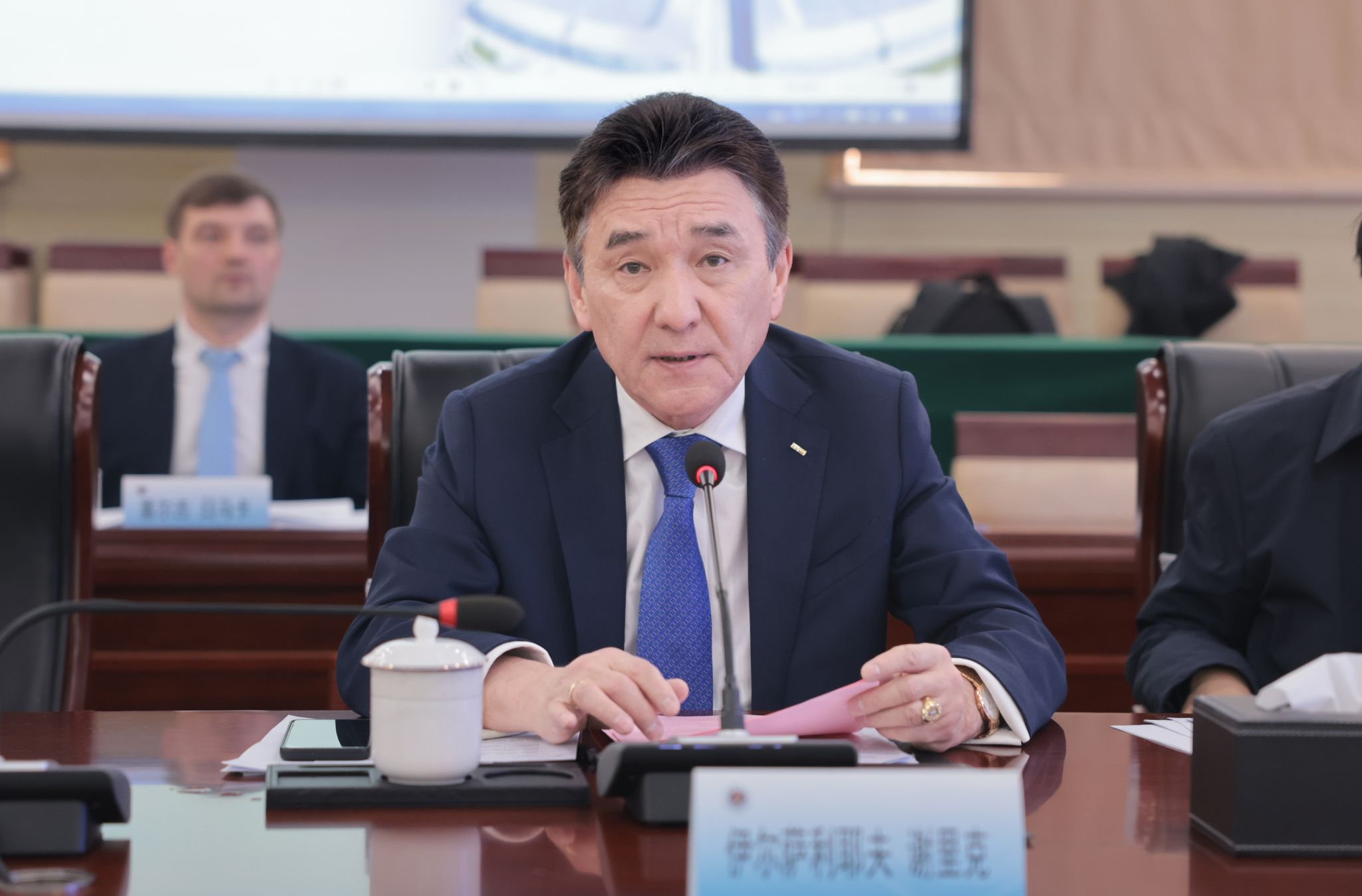 伊尔萨利耶夫·谢里克回顾了2024年中哈两国在双边贸易、中欧班列货物运输、教育合作、人才交流、旅游文化等方面取得的可喜成绩,介绍了哈方分院在从事科学研究,主办和参与国际活动、组织哈中物流企业对接会、扩大研究院品牌知名度等方面做出的积极贡献,同时分别从举办中国电商平台的实操培训、借“中国—中亚国家峰会”组织国际专家交流会、成立国际人工智能中心等方面进一步开展2025年的工作。