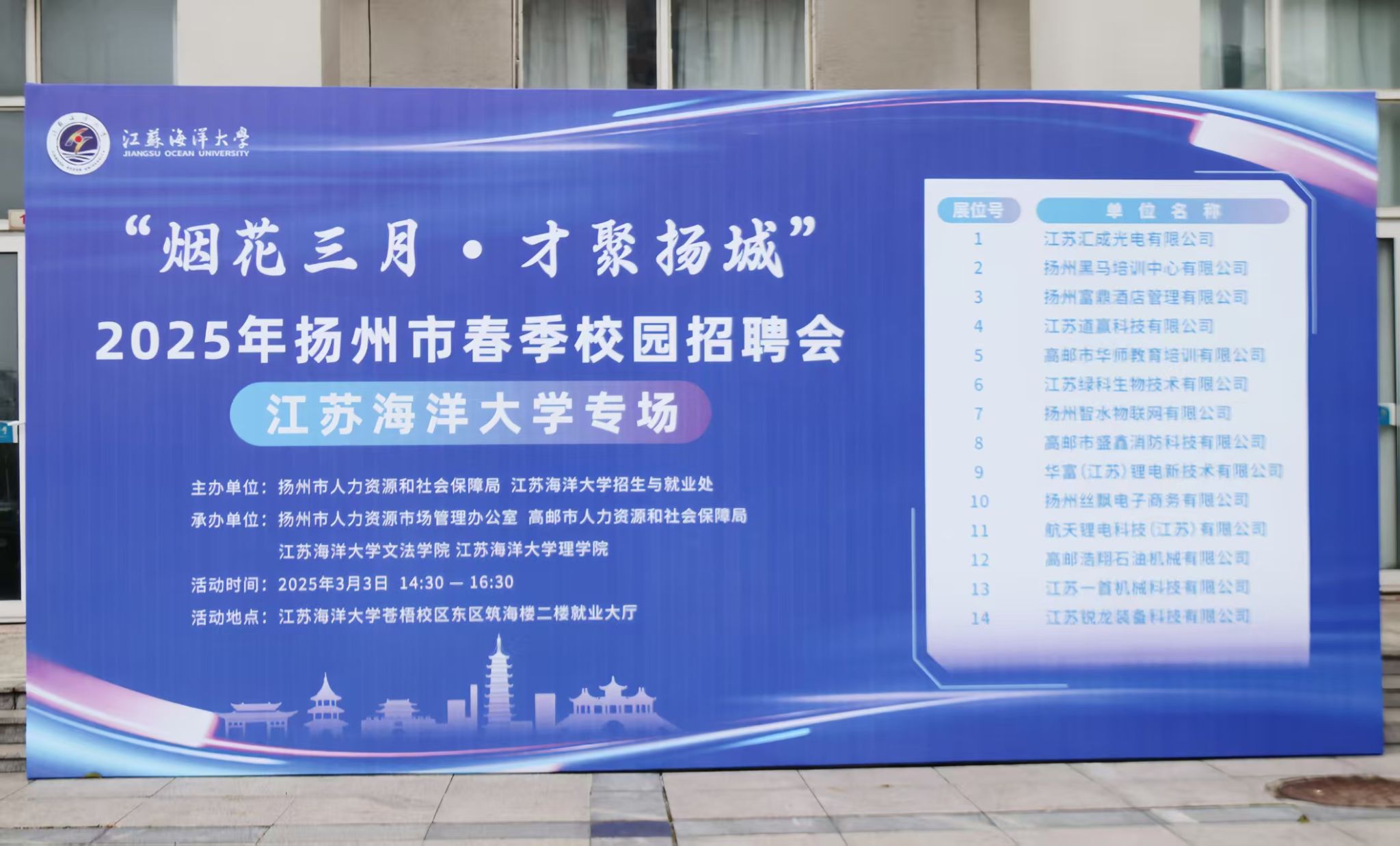 本次招聘会由江苏海洋大学招生与就业处联合扬州市人力资源和社会保障局共同主办,吸引了来自科技、机械、制造、教育等多个行业的优质企业参与。这些企业不仅为同学们提供了丰富的就业岗位,还带来了前沿的行业信息和宝贵的职业发展建议,为我校同学们提供了广阔的就业空间和发展机遇。