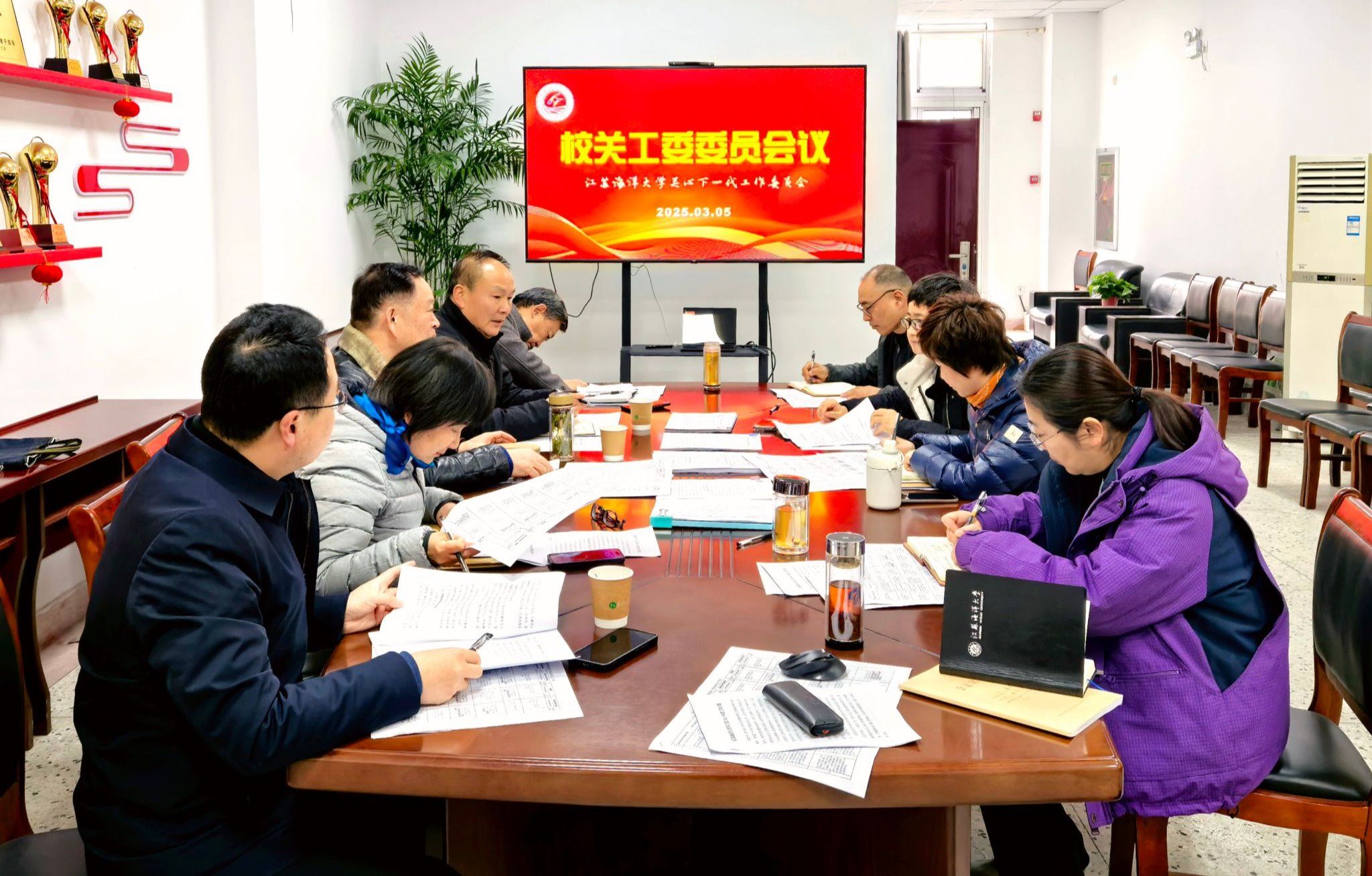3月5日下午,校关工委2025年度第一次委员会议在筑海楼104会议室召开。会议研究部署2025年二级关工委优质化建设达标认定工作和年度工作任务安排。校关工委常务副主任史顺良出席并主持会议,校关工委副主任、秘书长、副秘书长和办公室人员参加。