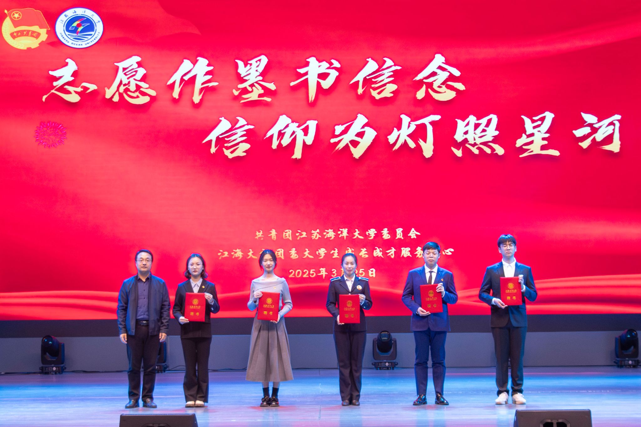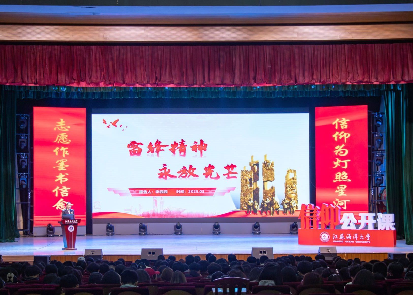 三月春风暖,信仰薪火传。为弘扬雷锋精神,激励广大青年学生积极投身志愿服务,3月25日晚,“志愿服务”主题信仰公开课在苍梧校区大礼堂举办。各学院代表800余人参加本次活动。校团委书记黄吉庆参加活动并为5位主讲人颁发“信仰公开课青年讲师”聘书。