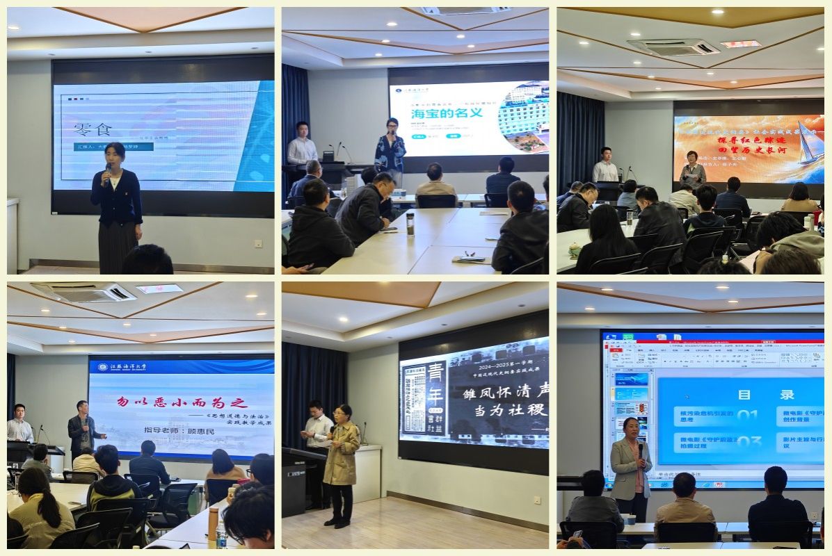 经过前期遴选,共有6件作品参与展示评比。本次展示评比采用“双视角解读”模式,由指导教师结合思政课实践教学主题揭示成果的理论和实践意义,学生团队则分享制作过程、作品构思和心得体会,形成“理论指导——实践转化”的立体对话。6件作品分别围绕《毛泽东思想和中国特色社会主义理论体系概论》《中国近现代史纲要》《思想道德与法治》等课程展开,或是再现历史场景,营造历史与现实的时空对话,或是以核污染危机为切口,警示生态环境治理刻不容缓,或是以小见大,将法治精神融入青春叙事,或是在红色革命场馆中追寻红色踪迹,回望历史长河。