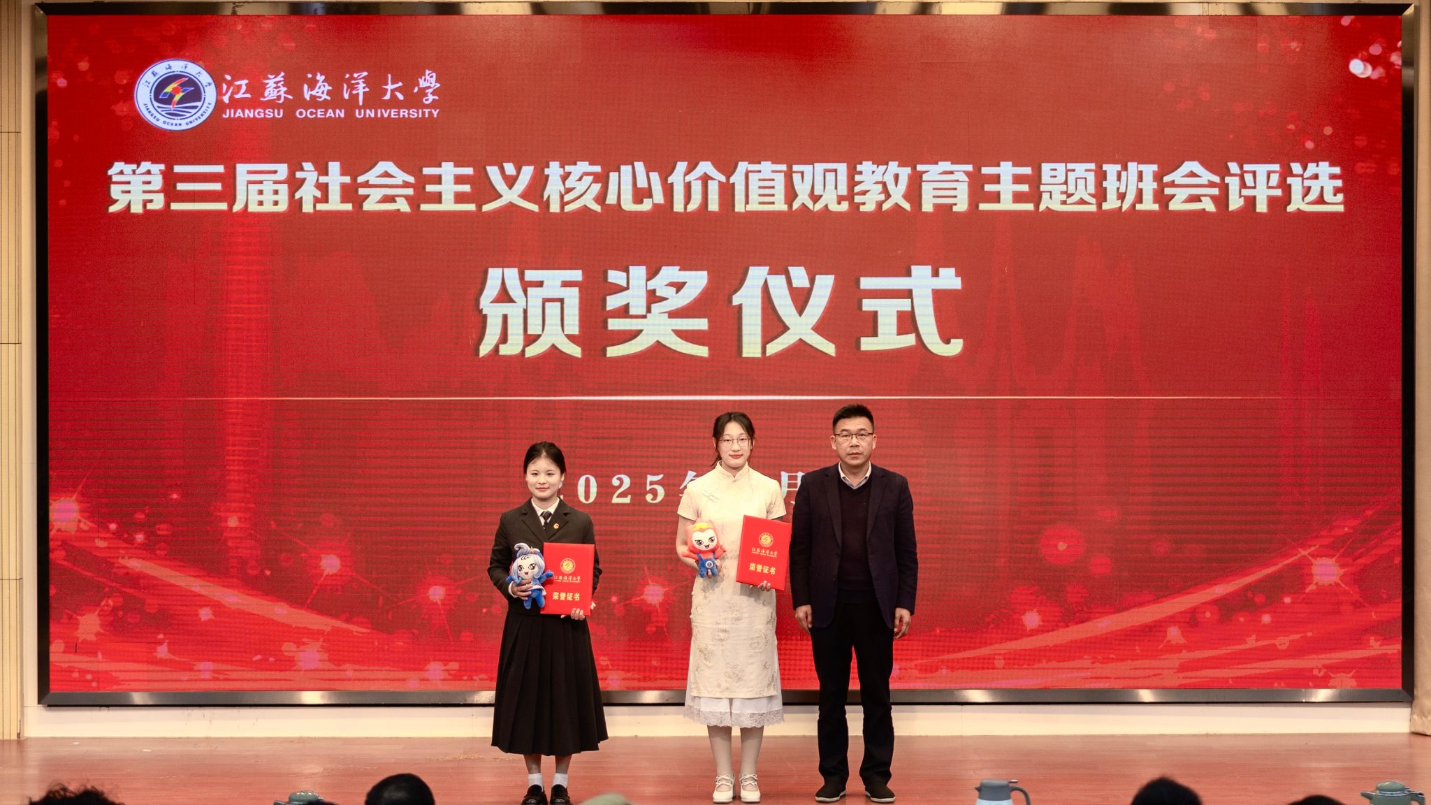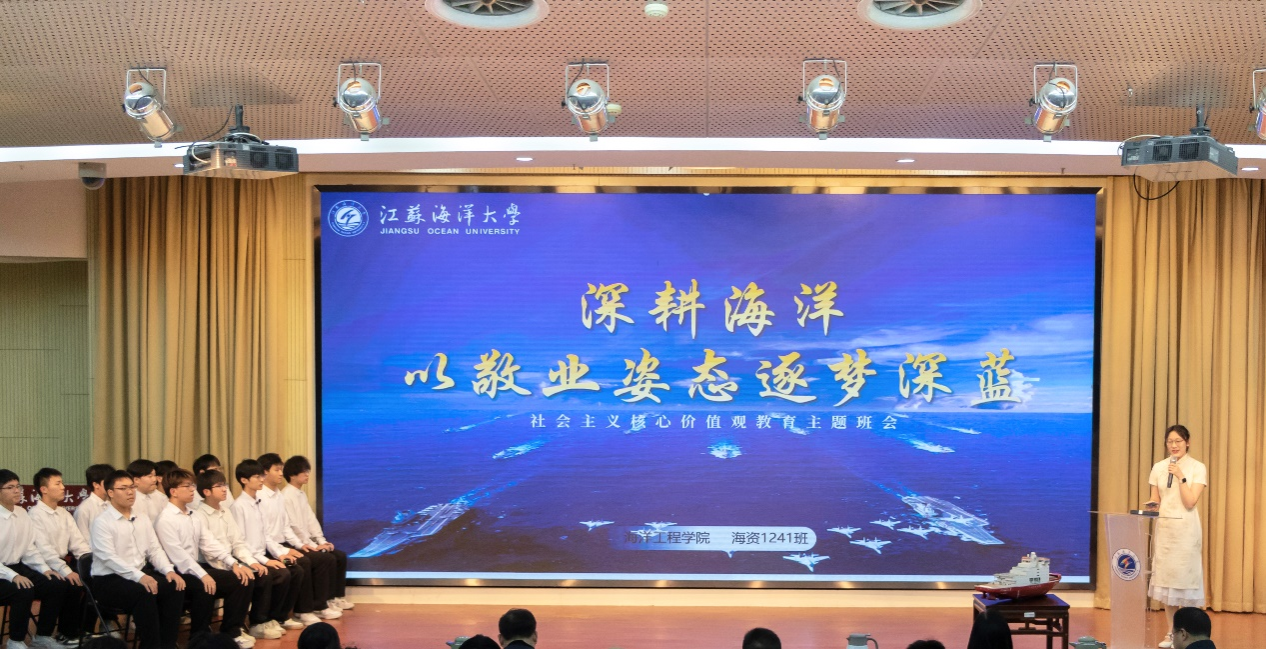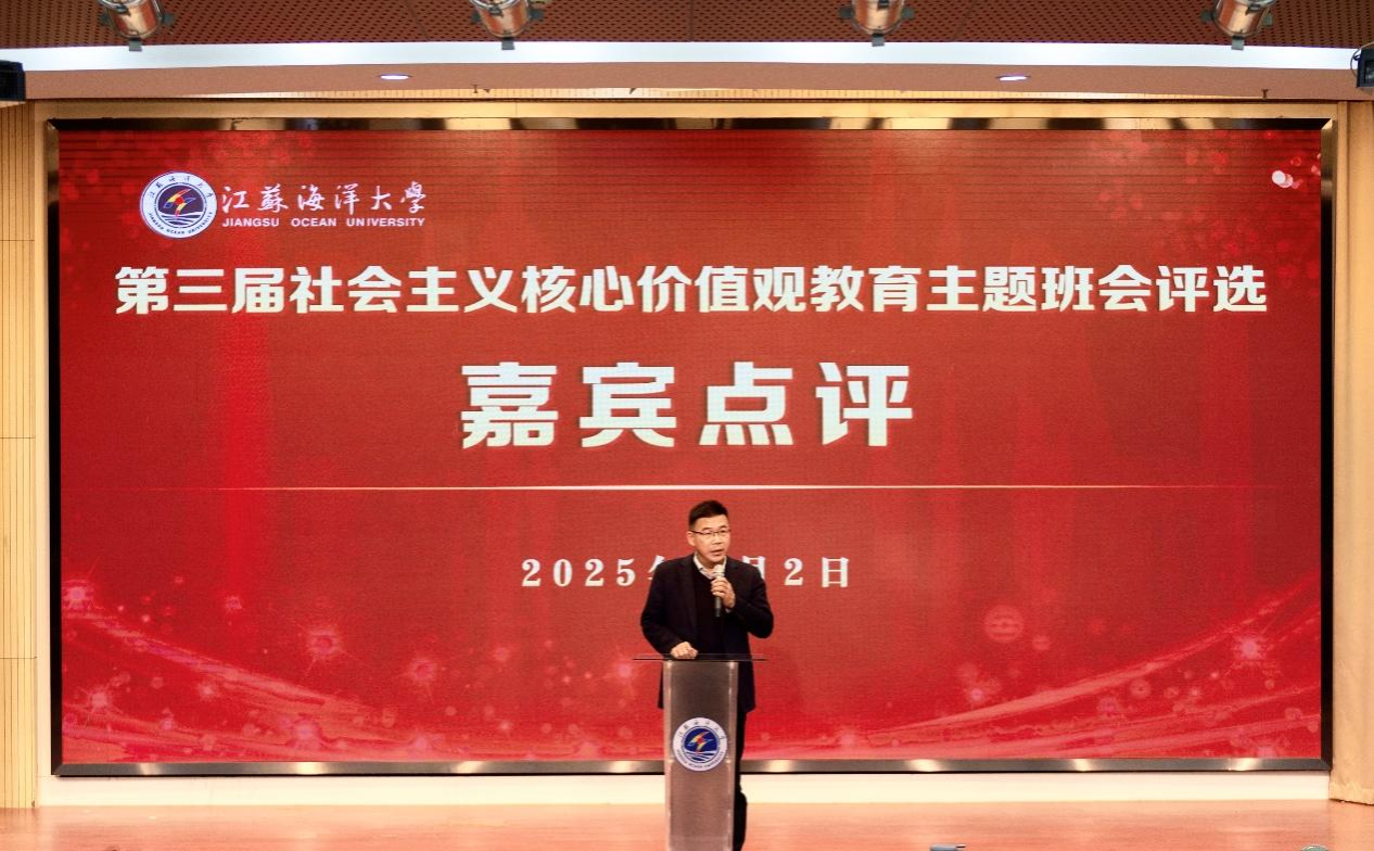 4月2日,江苏海洋大学第三届社会主义核心价值观教育主题班会评选决赛暨示范公开课在会议中心黄海厅顺利举办,本次评选活动经过学院初赛、学校复赛环节,海洋科学与水产学院等六支代表队成功入围决赛,进行展示。校党委常委、副校长郑利军,校党委常委、宣传部部长王波,教务处处长安俊丽,教学质量管理处处长孙国红,校团委书记黄吉庆出席本次活动并担任评委,各学院200余名师生代表到场观摩学习。