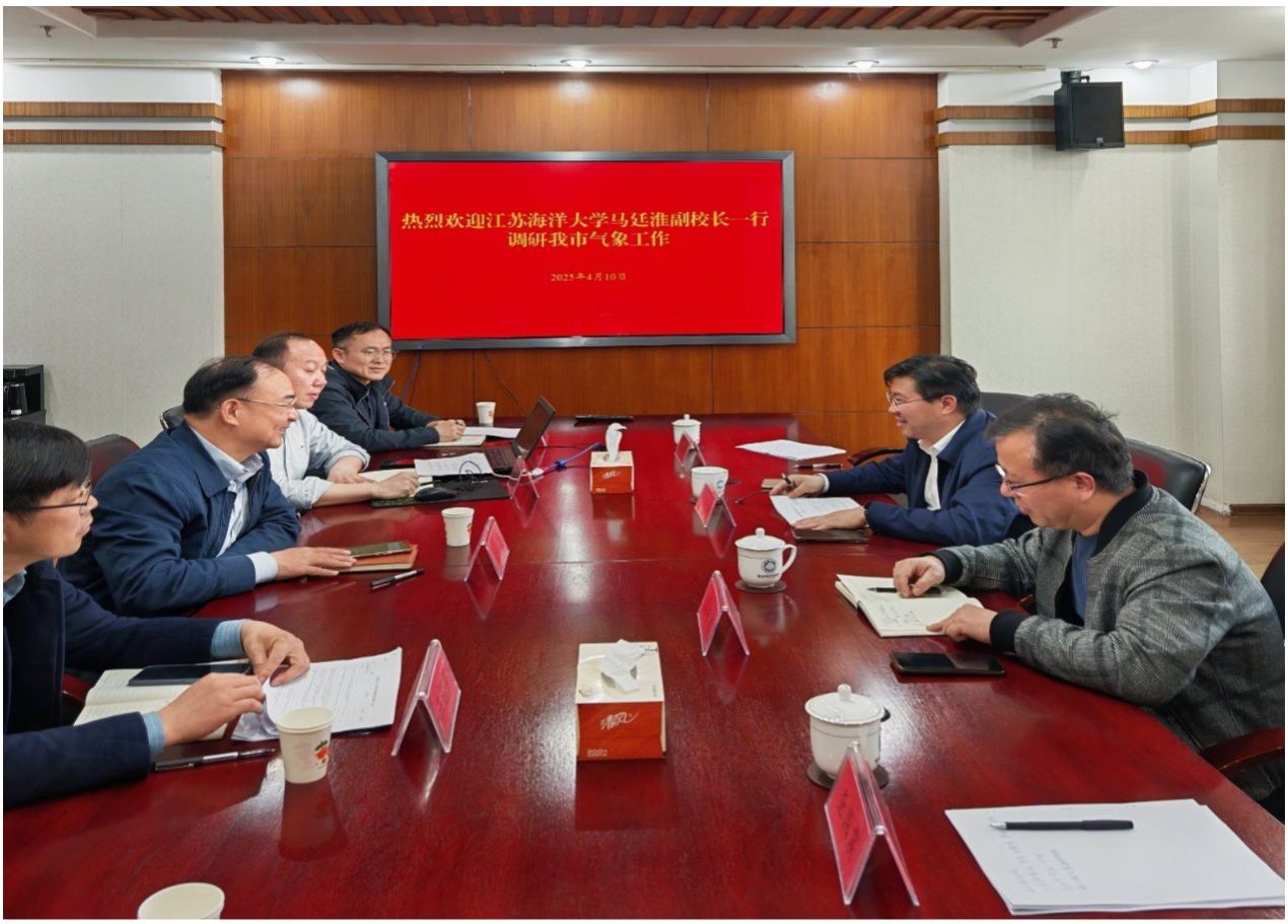 为了推动学校海洋气象学科发展,深化校地合作,4月10日下午,副校长马廷淮率队赴连云港市气象局进行调研交流。连云港市气象局党组书记、局长徐良谋、副局长班欣、王桂臣,气象预报处处长刘瑞翔和连云区气象局局长刘杰出席了会议。海洋技术与测绘学院副院长成印河等参加调研。
