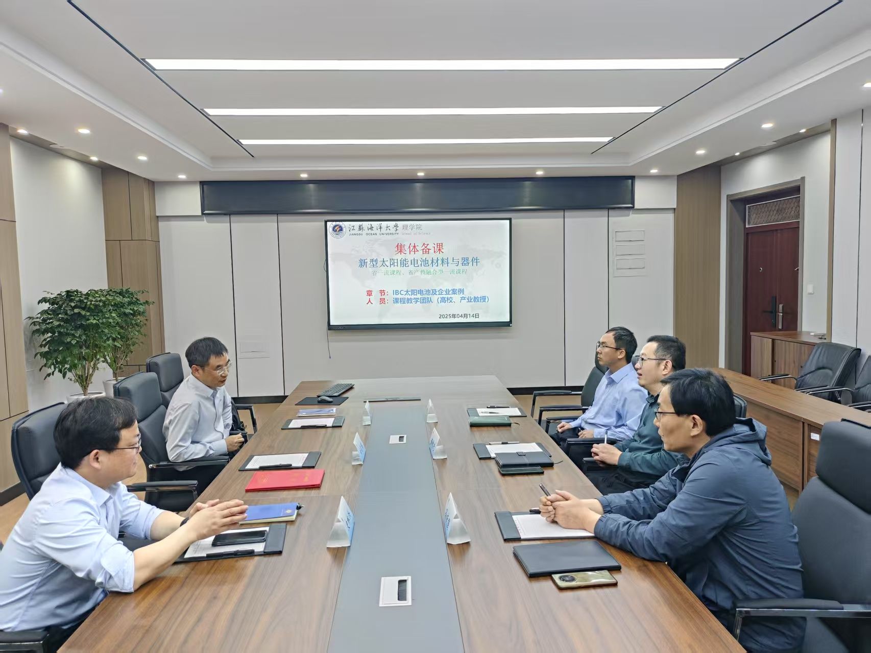 在产业技术前沿对接方面,校企双方就TOPCon、HJT等新型太阳电池技术展开专项研讨,并针对钙钛矿叠层电池产业化难题组建联合攻关小组,推动实验室成果向产线转化;在课程建设协同创新方面,组织了《新型太阳能电池材料与器件》省一流课程集体备课,引入企业真实项目案例,重构“材料制备-器件设计-产线实践”教学模块;建立了“产业教授+学术导师”双导师制,省产业教授将深度参与培养方案修订、实践教材编撰、产业教授进课堂等人才培养全过程;在实践教学体系升级方面,通过实习基地建设、企业开放日等活动,构建贯穿本科教育教学全程的阶梯式实践体系。