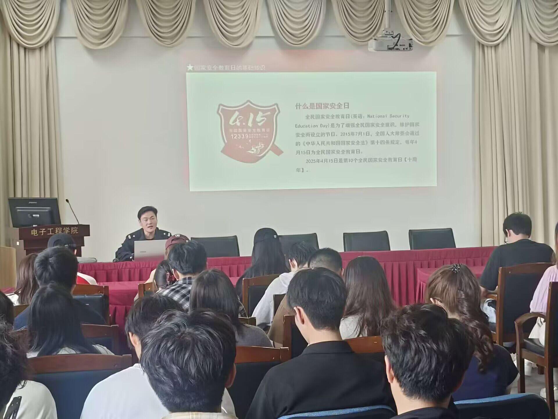此次“贯彻总体国家安全观,筑牢新时代安全防线”党日活动暨国家安全教育讲座以“大思政课”为纽带,促进“总体国家安全观”进课堂、进校园、进头脑,增强了青年的国家安全意识,推动青年树立“人人有责,人人可为”的使命意识,为构筑起坚不可摧的国家安全防线贡献青年力量,为筑牢国家安全屏障注入青春动能。电子工程学院将继续加强国家安全教育,引导学生树立“总体国家安全观”,以青春之力筑就国家安全钢铁长城。