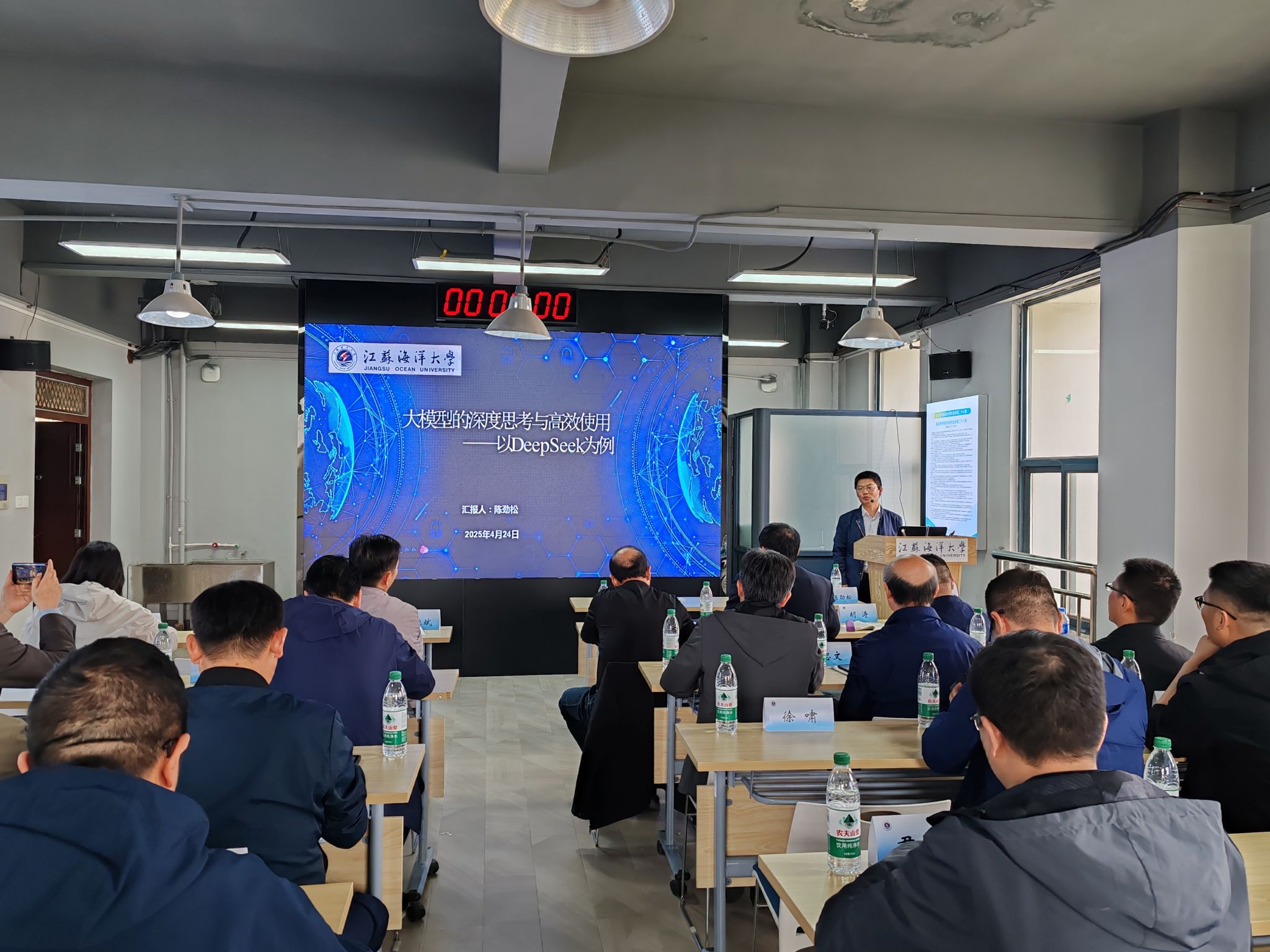 为助力企业把握智能制造技术发展趋势,深化数字化工具在工业场景中的应用,提升技术团队创新能力与生产效率。4月24日,连云港市机械工程学会在江苏海洋大学主办首届Deepseek智能制造专题培训班。江苏海洋大学工程训练中心主任、连云港市机械工程学会副会长陈劲松教授做题为《大模型的深度思考与高效使用-以Deepseek为例》的专题讲座。来自全市政府机关、企事业单位的40余名政府工作人员、企业技术负责人、研发团队骨干参加了本次培训。