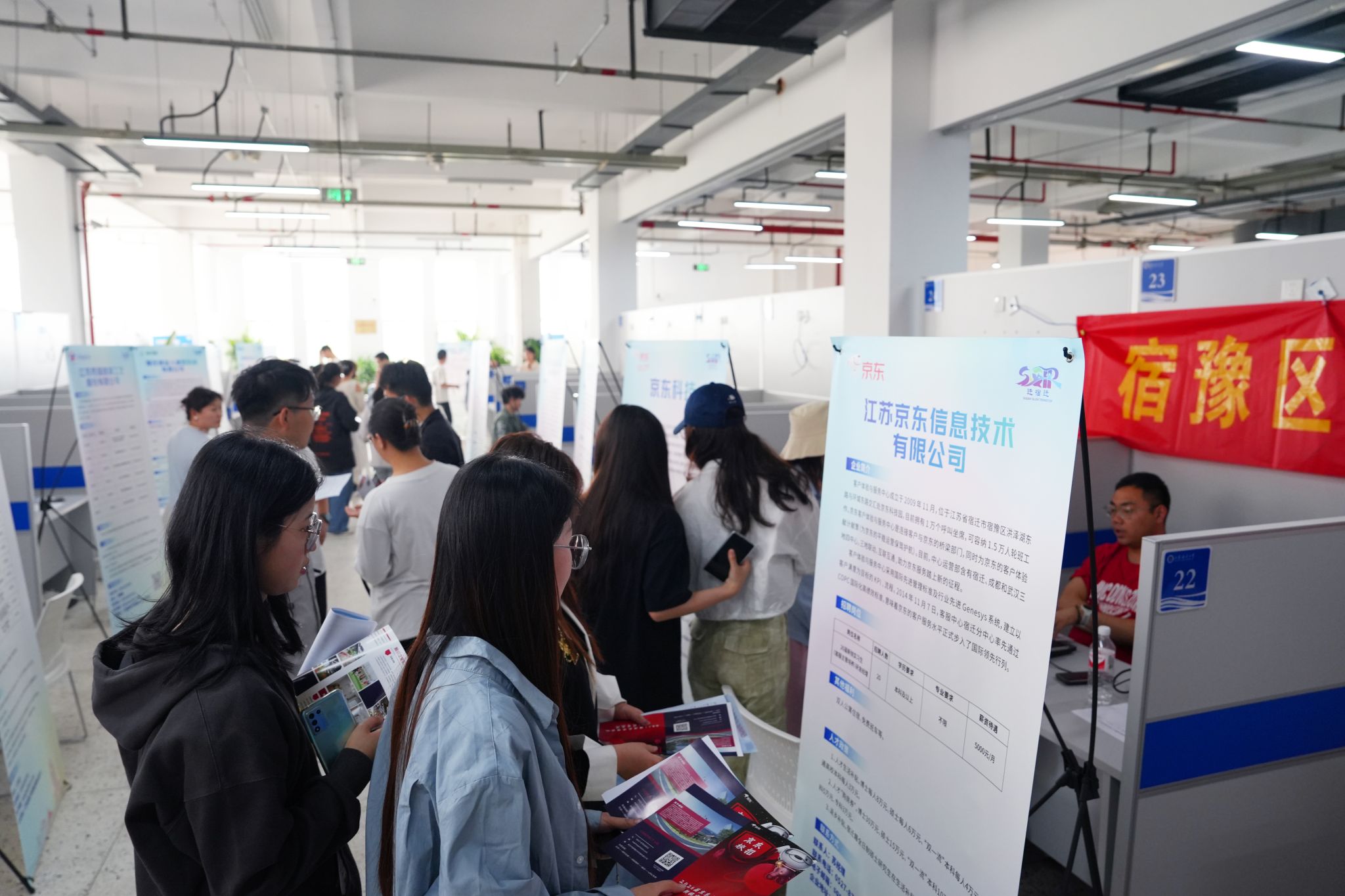 为深入贯彻落实关于促进高校毕业生就业创业的决策部署,搭建高校与企业之间的优质人才对接平台,5月23日,“校园宿迁日”宿豫区专场招聘会在东区筑海楼二楼就业市场举办。本次招聘会由宿迁宿豫区委人才办、宿迁市宿豫区人社局、江苏海洋大学招生与就业处主办,机械工程学院、环境与化学工程学院、海洋科学与水产学院、海洋工程学院、商学院、艺术设计学院、文法学院承办。