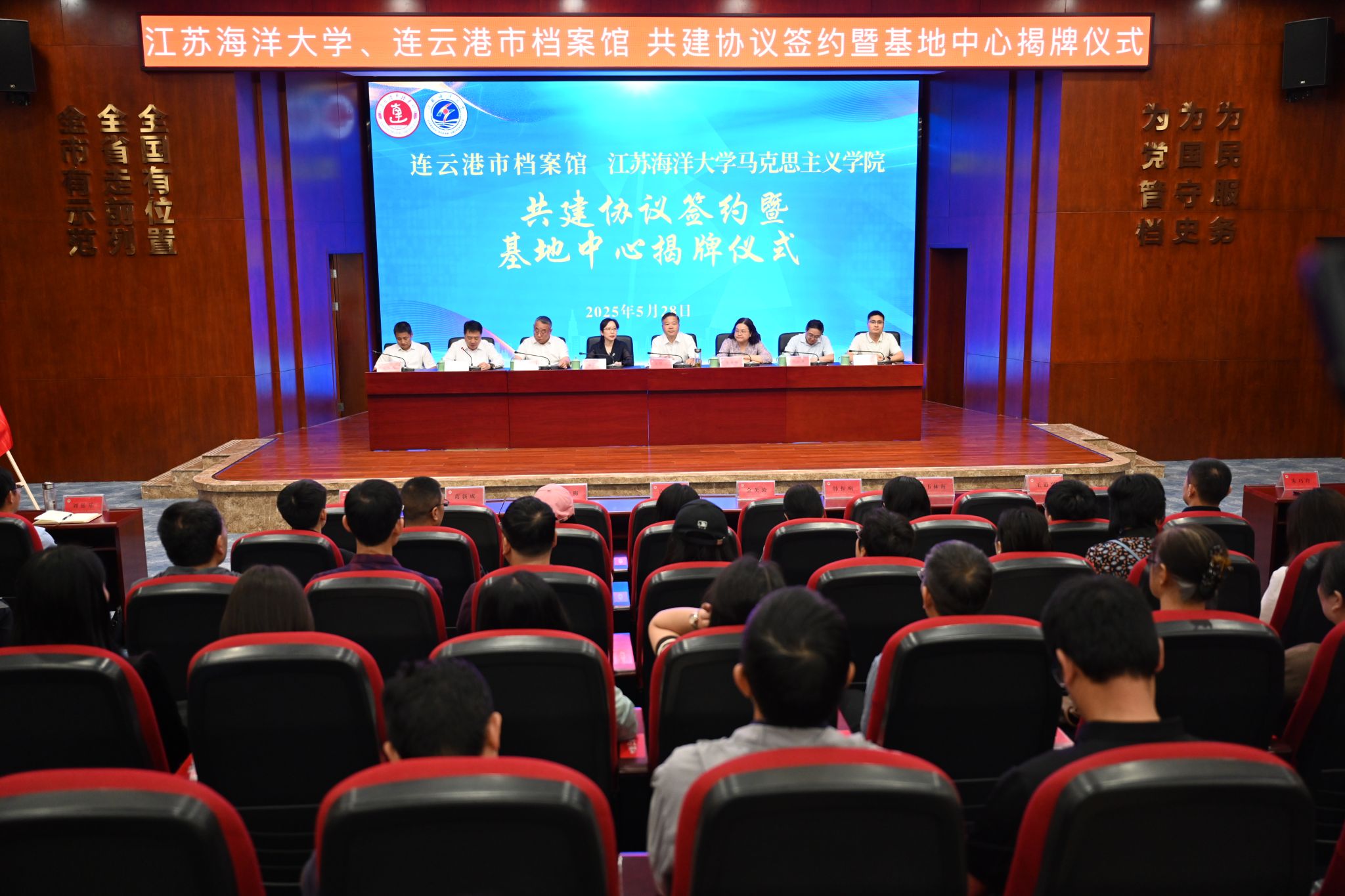 马克思主义学院院长沈春梅代表马克思主义学院与市档案馆签署共建思政课实践教学基地协议,并宣读了江苏海洋大学兼职思政课教师聘书。