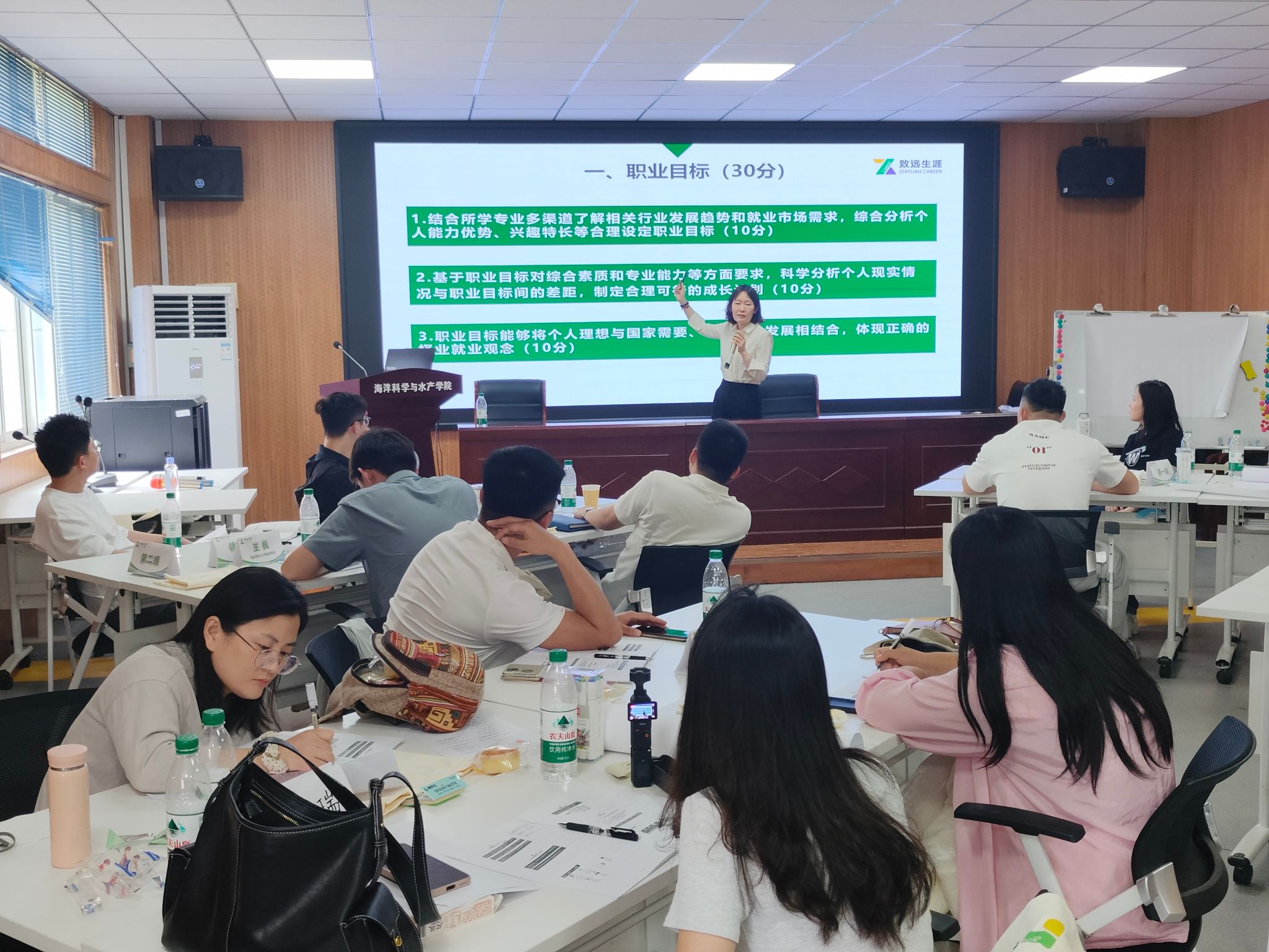 为全面推进我校生涯教育专业化、体系化建设,提升就业指导师资队伍核心能力,6月5日至6日,由招生与就业处主办的“赛课融合职业规划教学师资培训”在我校苍梧校区举行。本次培训特邀致远生涯高级讲师庞敏担任主讲,我校招生与就业处就业指导中心工作人员、部分学院辅导员参加了培训。同时,培训吸引了连云港师范学院、南京医科大学康达学院、江苏财会职业学院等在连高校教师代表参加,推动了区域高校生涯教育师资队伍建设协同发展,共同探索新时代背景下生涯教育创新路径与服务新模式。