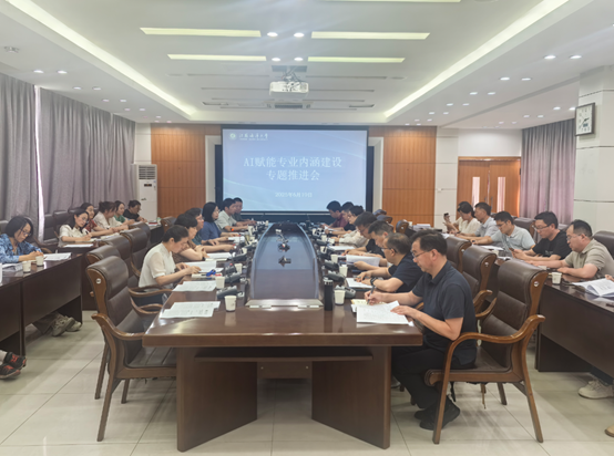 6月10日下午,我校在文渊楼会议室召开人工智能赋能专业内涵建设专题推进会。副校长马廷淮主持会议,各学院教学院长、教务处、教学质量管理处(教师教学发展中心)相关负责人参会。