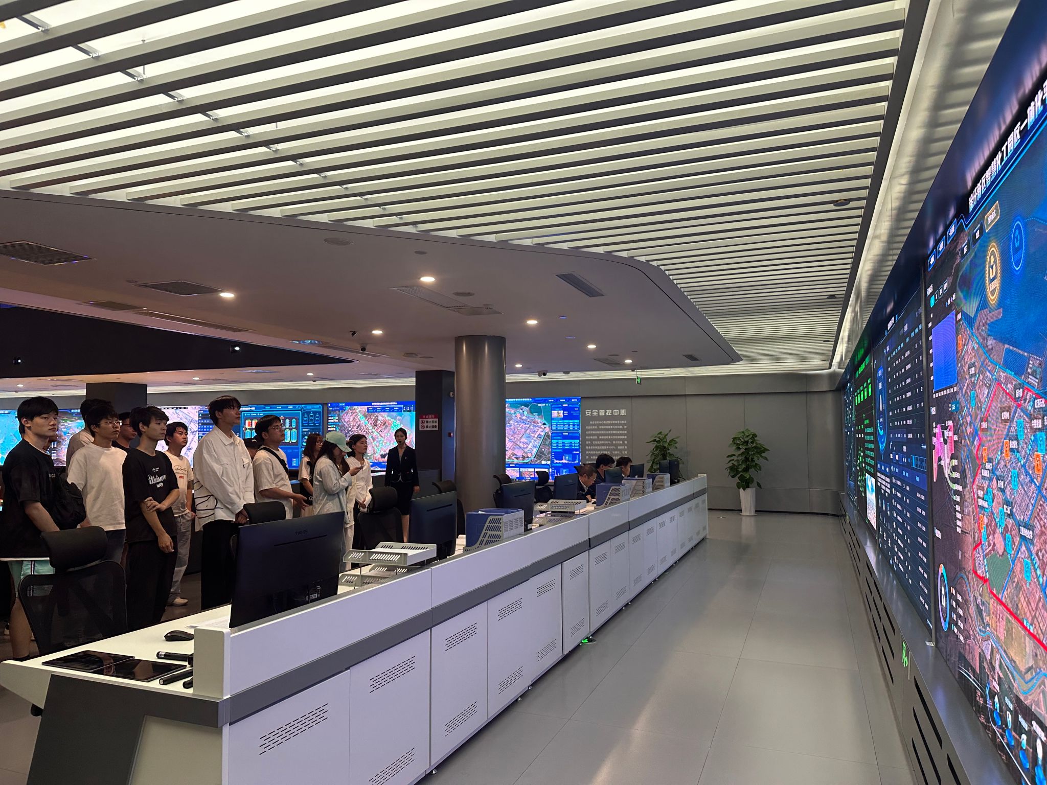 走进石化基地运管服务中心,扑面而来的科技感更是让学员们深受触动。巨大的智能管控屏幕上,园区内各企业的安全、环保、能耗等核心数据实时呈现、一目了然。工作人员系统介绍了该平台如何运用大数据、云计算、人工智能等尖端技术,构建起覆盖全生命周期、全产业链条的智能化管理体系,全面提升园区的治理效能和本质安全水平。学员们认真聆听,积极提问,深刻领会了智能化、数字化在现代产业治理中的核心驱动作用。